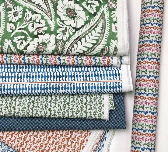 1 Maya Romanoff - Ajiro Burst of Happiness | 2 Borderline - Malabar | 3 Marvic - Gavia | 4 Twigs - Primavera | 5 DogwoodJangle Sky trim | 6 Borderline - Anna | 7 Twigs - Pheasant Marine | 8 TDC - Lino | 9 Templeton - Langhe | 10 Calvin - Mullem | 11 Jasper - Corsica wallcovering | 12 Dani - Florida | 13 Dani - Vintage | 14 Waterhouse - Opera mohair | 15 Hazelton House - Hatfield