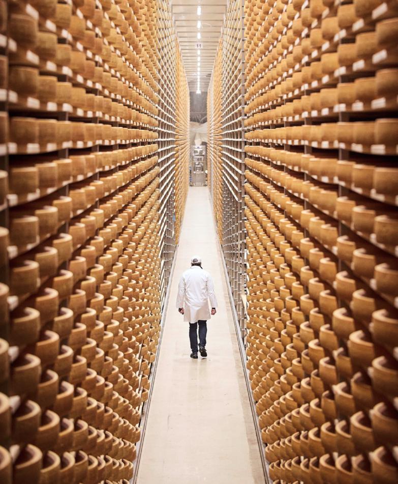 Dans les caves d’affinage d’Elsa Group à Ursy (FR), 140 000 meules de Gruyère AOP vieillissent en paix.