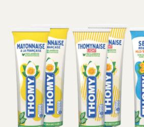 Moutarde douce, mayonnaise, mayonnaise, Thomynaise ou purée de tomates, Thomy p. ex. moutarde douce, 2 x 200 g, 3.65 au lieu de 4.60, (100 g = 0.91)