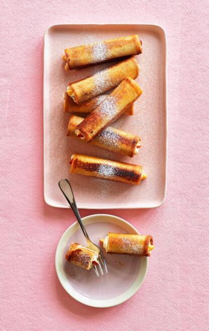Aplatir finement 8 tranches de pain à l’aide d’un rouleau à pâtisserie. Dénoyauter une pêche et couper la pulpe en petits dés. Les mélanger avec 300 g de fromage frais et 2 sachets de sucre vanillé. Étaler 2 cs de cette crème sur la moitié de chaque tranche de pain et rouler bien serré. Ensuite, faire fondre 50 g de beurre dans une poêle et y faire dorer les rouleaux à feu moyen. Servir aussitôt. Plus de recettes avec des pêches sur migusto.ch