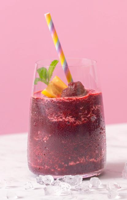 Verser 2,5 dl de Ice Tea à la cerise et 200 g de cerises surgelées dans un mixeur. Réduire en fine purée. Ajouter 60 g de glace pilée et 2 cs de jus de citron, mixer à nouveau brièvement. Répartir le mélange dans des verres préalablement refroidis quelques minutes au congélateur, garnir de rondelles de citron et décorer avec un peu de menthe. Servir immédiatement. Plus de recettes de thé glacé sur migusto.ch