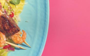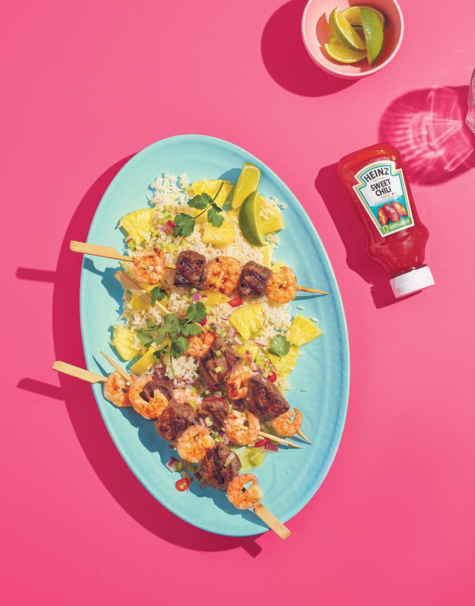Surf-and-Turf-Spiess mit Ananas-Reis