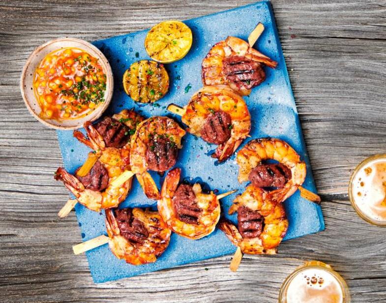 Surf-and-Turf-Spiess mit Ananas-Reis