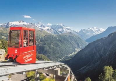 In Martigny erwartet uns heute Morgen der Mont-Blanc-Express. Auf kühner Streckenführung durchquert der Zug die wilde Trientschlucht und klettert über eine eindrückliche Steigung, vorbei an tosenden Wassern und tiefen Schluchten. In Châtelard geht es mit total 3 Bahnen bis hoch zur beeindruckenden Krone des Staudamms von Emosson – grossartige Blicke auf den