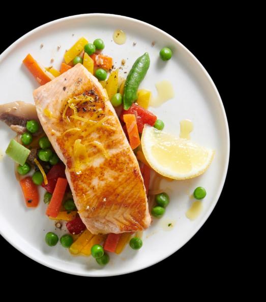 Râper finement le zeste d’un citron et le mélanger à 0,5 dl d’huile d’olive. Chauffer un peu d’huile et faire revenir 600 g d’un mix de légumes asiatiques surgelé. Y presser un peu de jus du citron, saler et poivrer. Couvrir et faire mijoter env. 5 min à feu moyen. Chauffer un peu d’huile dans une grande poêle. Assaisonner le saumon de sel et de poivre puis le saisir env. 4 min des deux côtés. Le dresser avec les légumes, l’huile citronnée et le reste du citron coupé en quartiers. Idéal avec du riz. www.migmag.ch/saumon-huile-citronnee