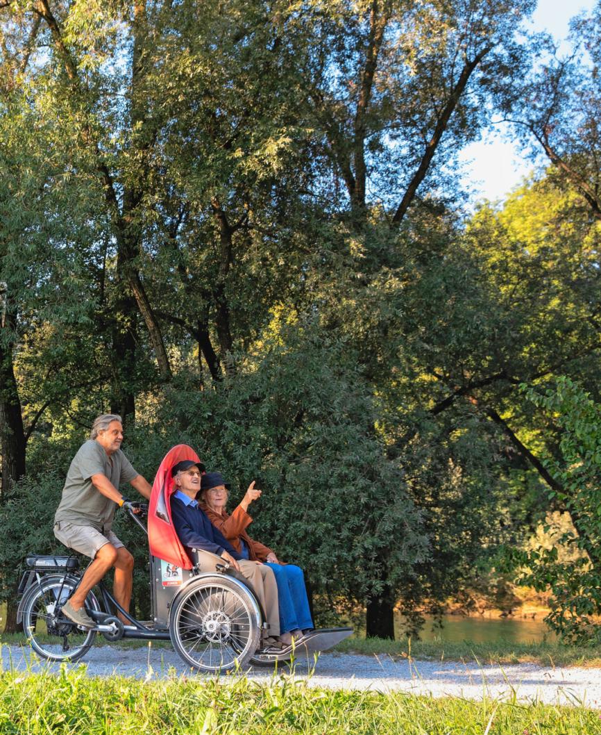 À vélo sans âge invite des résident(e)s d’EMS à faire un tour en rickshaw. Grâce à elle, nos aînés peuvent retrouver les joies de la bicyclette, sans crainte de se blesser. L’association est soutenue par le Pour-cent culturel Migros.