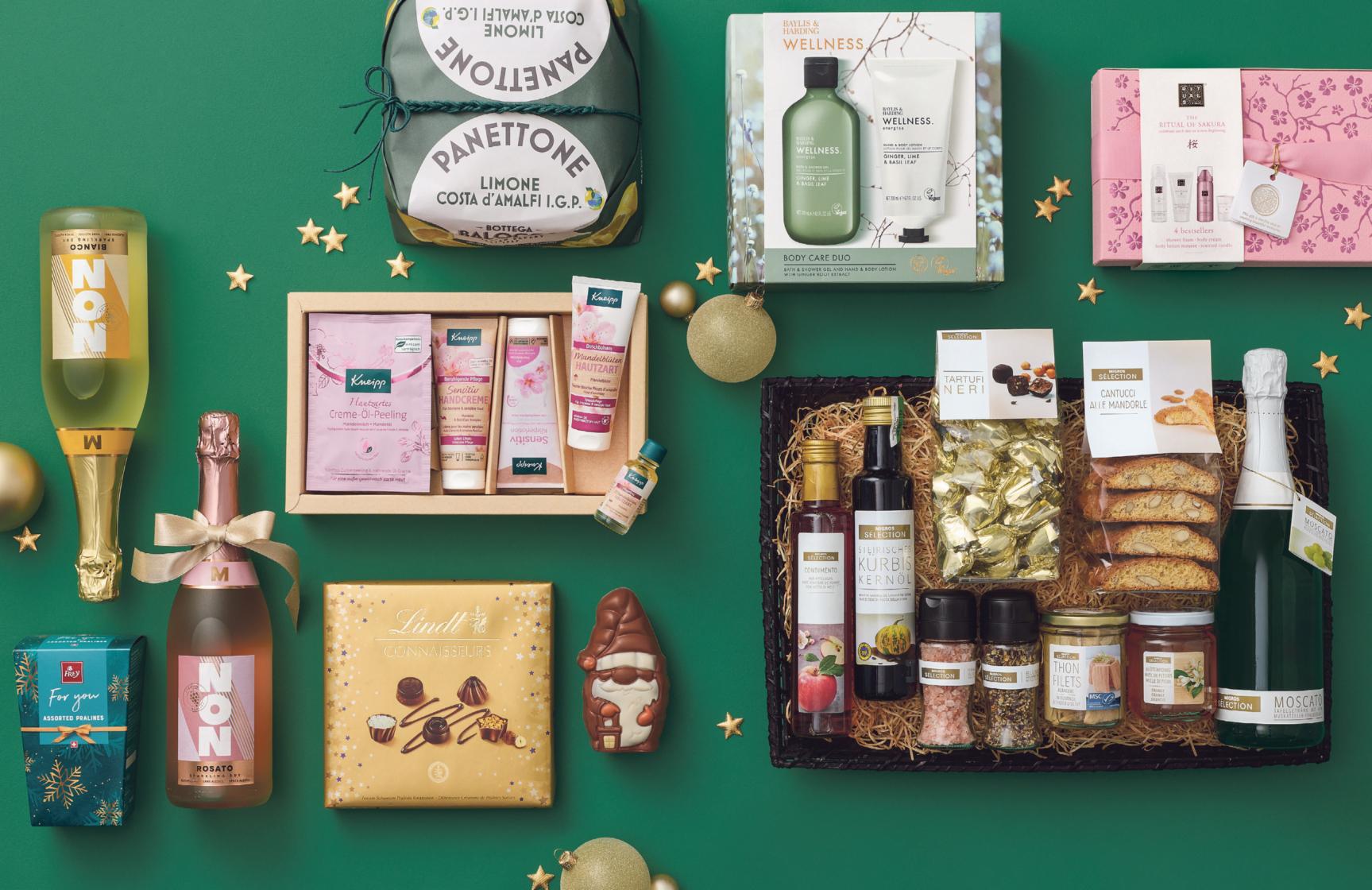 1 Vin mousseux Bianco Non sans alcool, 750 ml 7.50 2 Vin mousseux Rosato Non sans alcool, 750 ml 7.50 3 Frey For You Assorted Pralines 185 g 6.50 4 Pralinés Connaisseurs Lindt 143 g, 17.95 5 Coffret cadeau Fleur d’amandier Kneipp avec baume de douche, lait pour le corps, crème pour les mains, bain douceur et peeling crème-huile, la pièce 7.50 6 Panettone Limone Balocco 750 g, en vente dans les plus grands magasins 15.50 7 Nils Frey 100 g 5.25 8 Coffret cadeau Wellness Body Care Baylis & Harding avec gel de bain et douche, crème pour les mains et lotion corporelle, la pièce 19.95 9 Coffret cadeau The Ritual of Sakura Ritual avec gel douche, crème pour le corps, lotion pour le corps et bougie parfumée, la pièce 29.90 10 Petite corbeille cadeau Sélection en vente dans les plus grands magasins 69.–