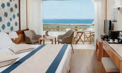 Unterkunft: Doppelzimmer (ca. 50 m2) mit Dusche, WC, Föhn, Bademänteln, Hausschuhen; Telefon, TV, WLAN (gratis), Safe, Minibar, Tee-/Kaffeekocher, Klimaanlage; Balkon oder Terrasse. Buchbar mit Verbindungstür und mit Garten- oder Meersicht. Die Junior Suiten (ca, 85 m2) verfügen zusätzlich über mehr Wohnfläche und Meersicht.