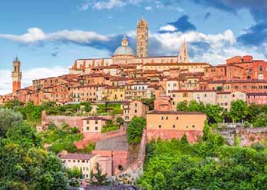 6: Strove–San Gimignano–Siena–Strove, ca. 90 km In San Gimignano, das auch «Mittelalterliches Manhatten» genannt wird, tauchen Sie in die Atmosphäre des 14. Jahrhunderts ein. Der international geschätzte Weisswein Vernaccia, einer der besten Weine Italiens, wird ausschliesslich innerhalb der Gemeinde San Gimignano produziert. Die schöne Stadt Siena, die auf drei Hügeln thront und zum UNESCO-Welterbe zählt, beeindruckt mit ihren Palästen sowie dem Dom aus schwarzem und weissem Marmor, der ein Paradebeispiel für die italienische Gotik ist. Stöbern Sie durch die kleinen Läden und Werkstätten in den lebhaften Gassen, entdecken Sie regionale Produkte lokaler Kunsthandwerker und probieren Sie Köstlichkeiten der toskanischen Küche. Übernachtung in der Borgo San Luigi *** o. ä. in Strove.