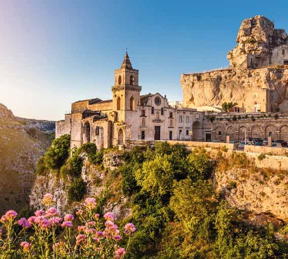 In Matera eröffnet sich Ihnen ein traumhafter Panoramablick auf die anmutige Stadt, die zum UNESCO-Weltkulturerbe zählt. Die malerische Klippenstadt ist weltberühmt für ihre charakteristischen Häuser aus Höhlenlabyrinthen und aussergewöhnli-