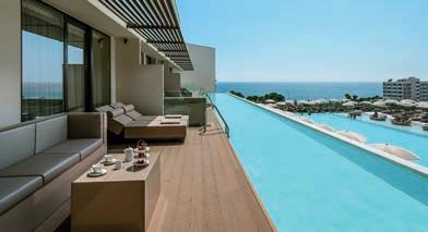 Die Junior Suiten sind geräumiger mit Balkon oder Terrasse und Meersicht. Auch mit Privatpool buchbar. Die Suiten bieten mehr Platz sowie Balkon oder Terrasse mit