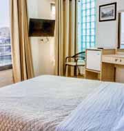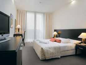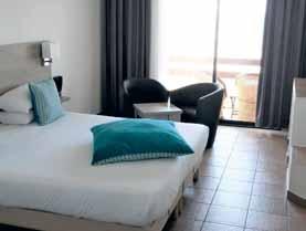 Logement Les confortables chambres doubles (22 m2) ou chambres doubles Deluxe (22 m2) ont douche, WC, sèchecheveux, téléphone, TV, Internet sans fil gratuit, minifrigo, climatisation. Balcon sur demande. Plus spacieuses, les suites familiales (44 m2) ont deuxième lit double en plus. Max. 4 adultes et 1 enfant.