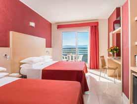 Logement Les chambres doubles (23 m2) ont bain ou douche, WC, sèchecheveux, téléphone, TV, Internet sans fil gratuit, climatisation, balcon vue mer. Les chambres triples (25 m²) ont le même aménagement de base. Les chambres familiales, au même aménagement de base, ont lits superposés en plus. Avec vue mer laterale.