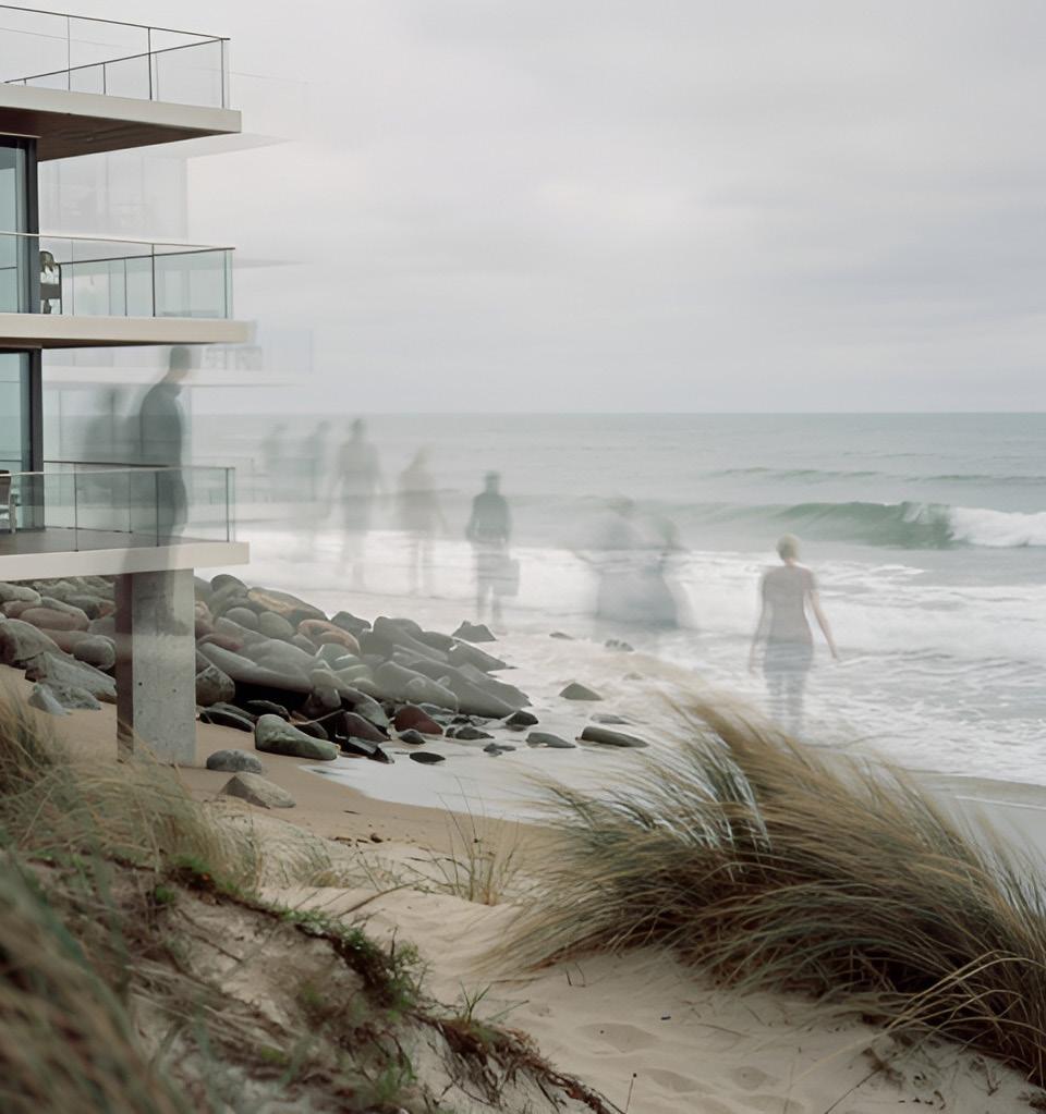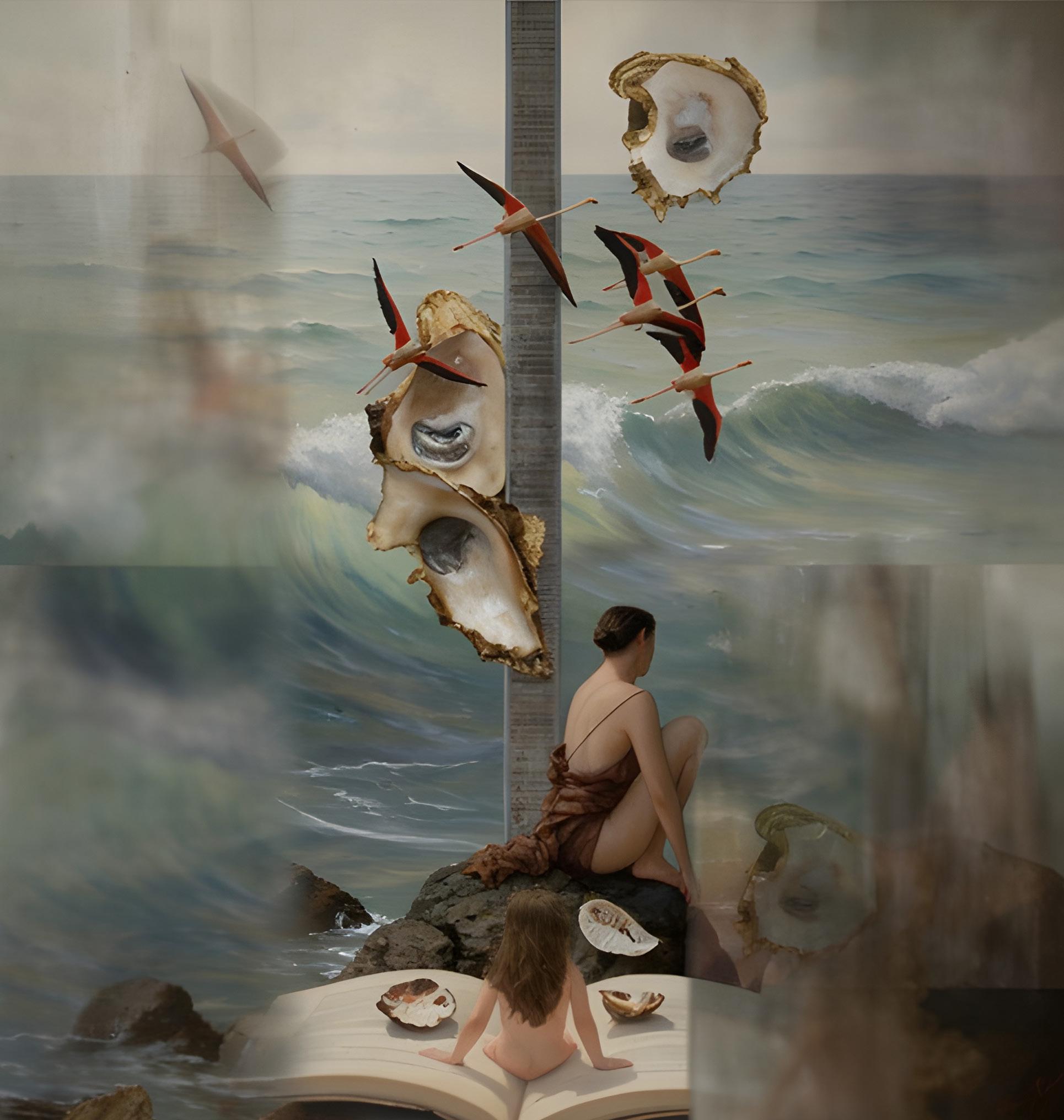 “Between Waves and Walls” Digital Collage, AI-assisted