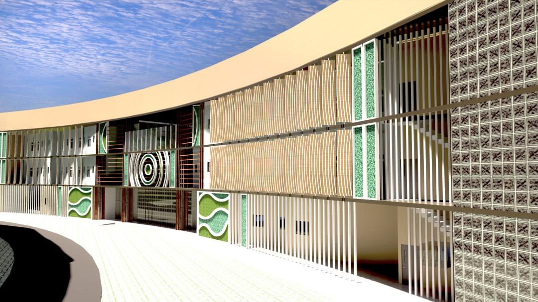 The design of the structures in the development is inspired by the natural shapes of a flower and leaves. The inspiration was chosen as it relates to one of the objectives of the development which is to give importance to provisions for natural therapies through green spaces. The leaves dominate the view of the green spaces while the flower adds color and visual interest to the spaces dedicated to meditation and relaxation of users, hence they were considered as a representation of the development ’s character.