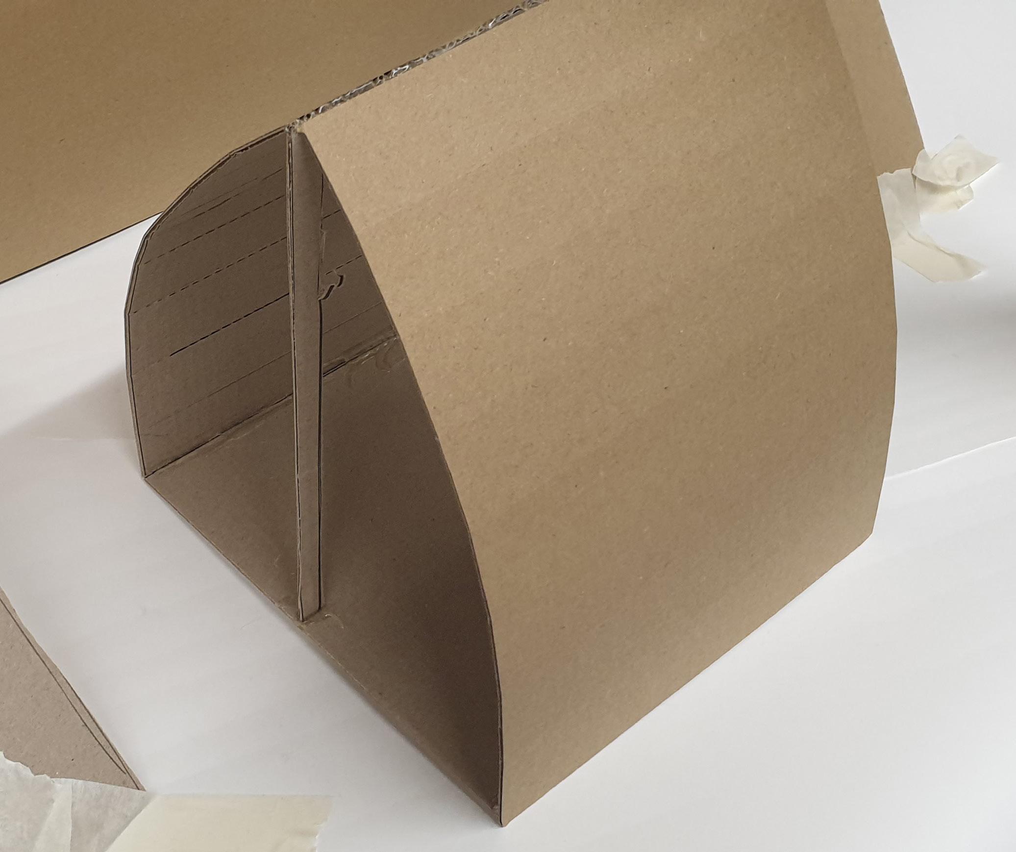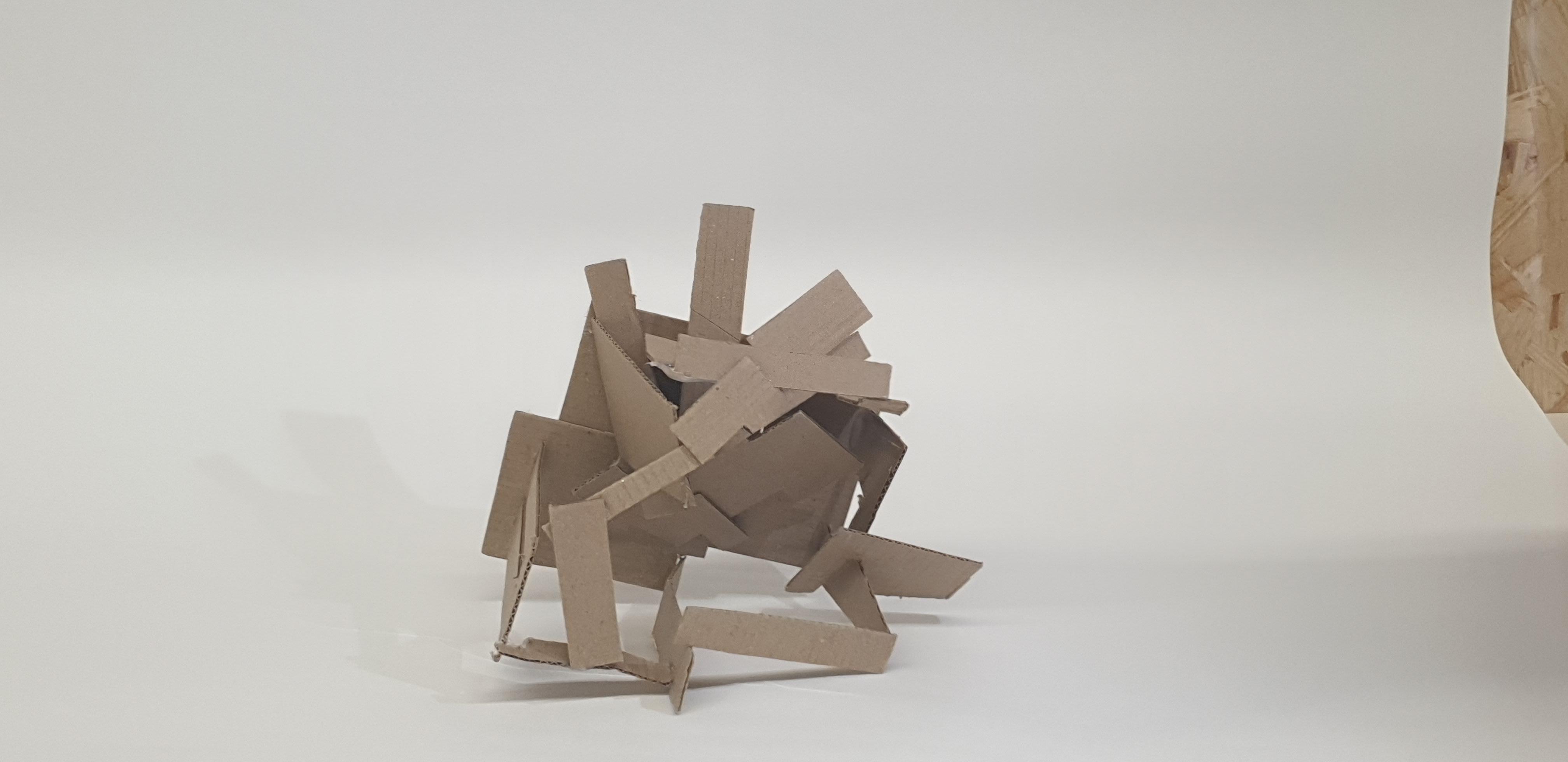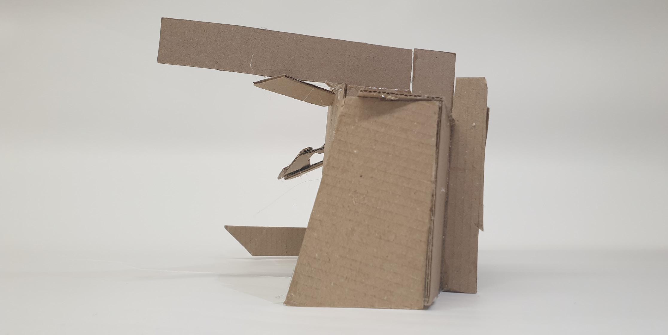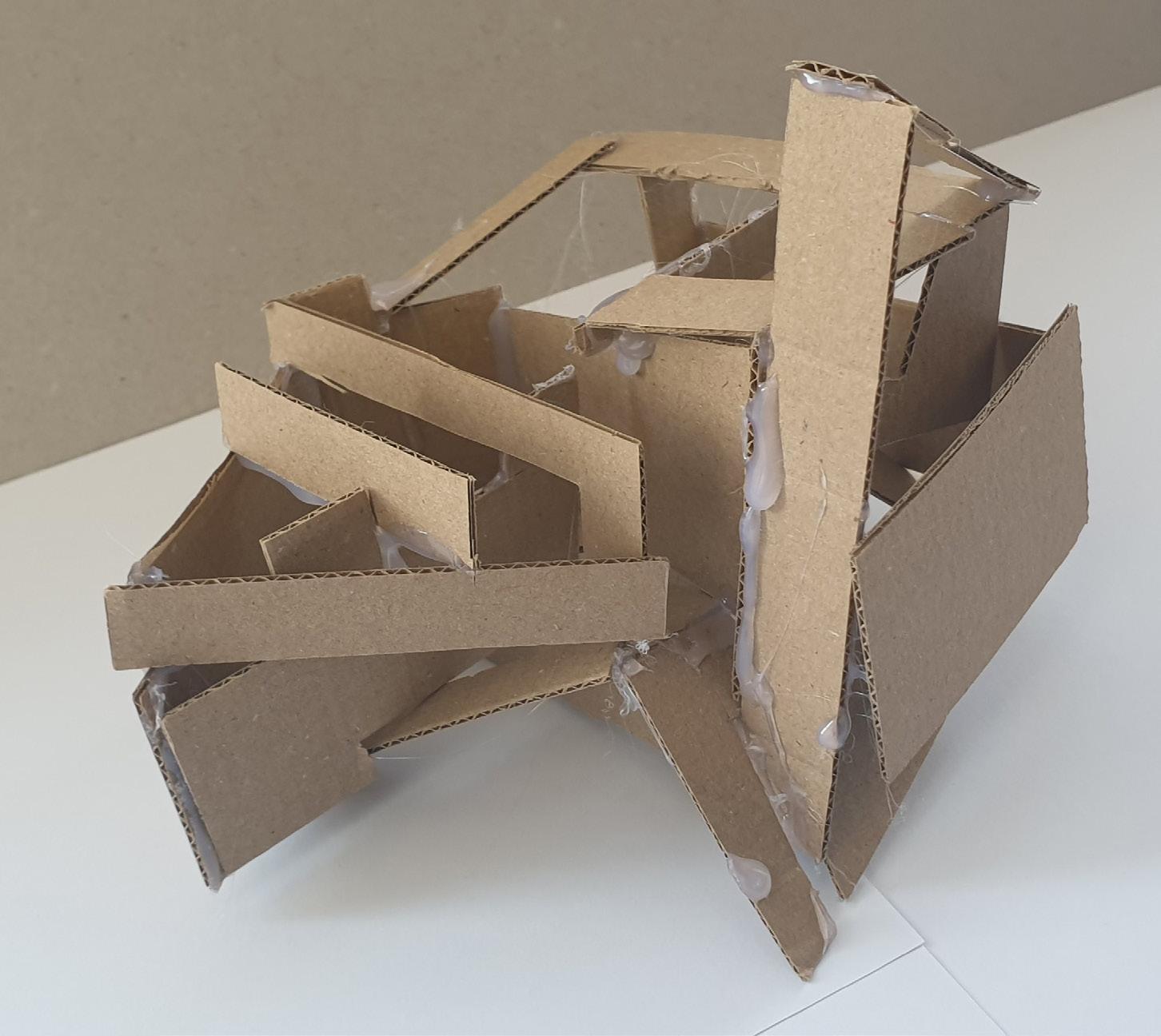 Making gate-looking shapes around the small model allowed light to be seen from big spaces to small gaps inside the model. This model is my favourite as it's simple but powerful at the same time. I used less glue, which allowed the pieces to stay in the position I wanted them to stay.