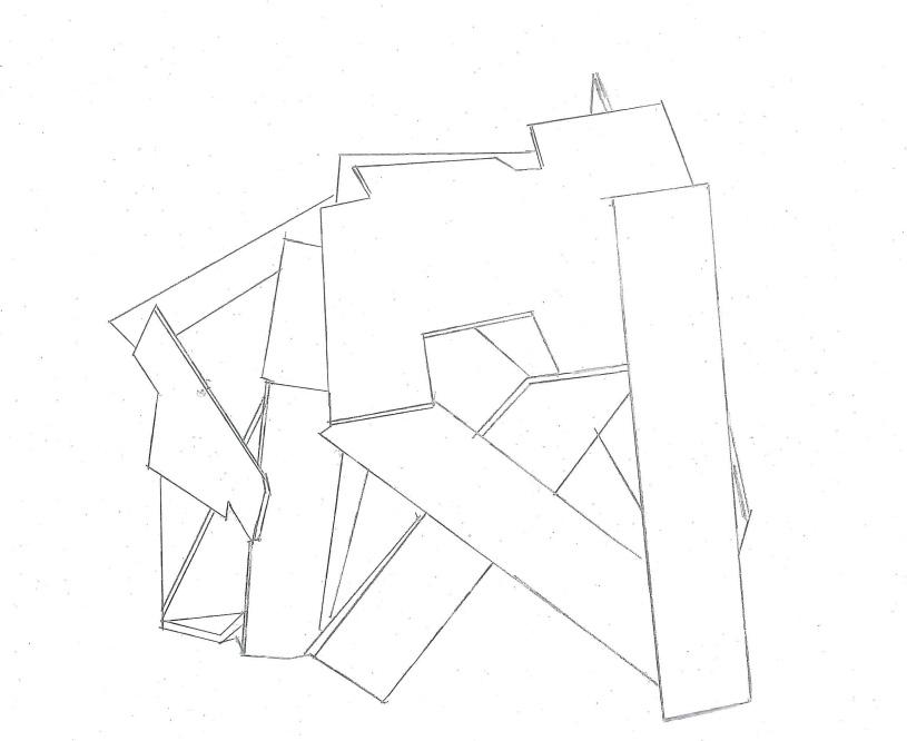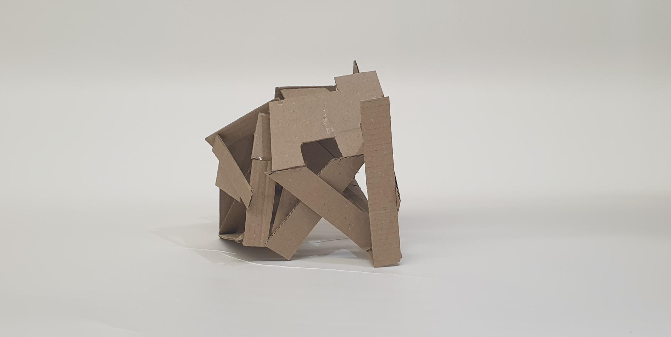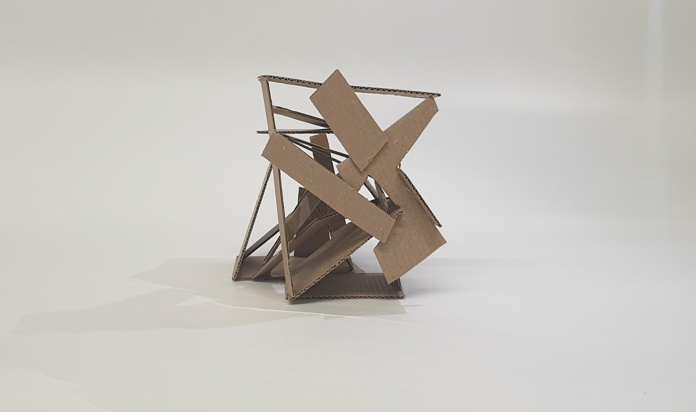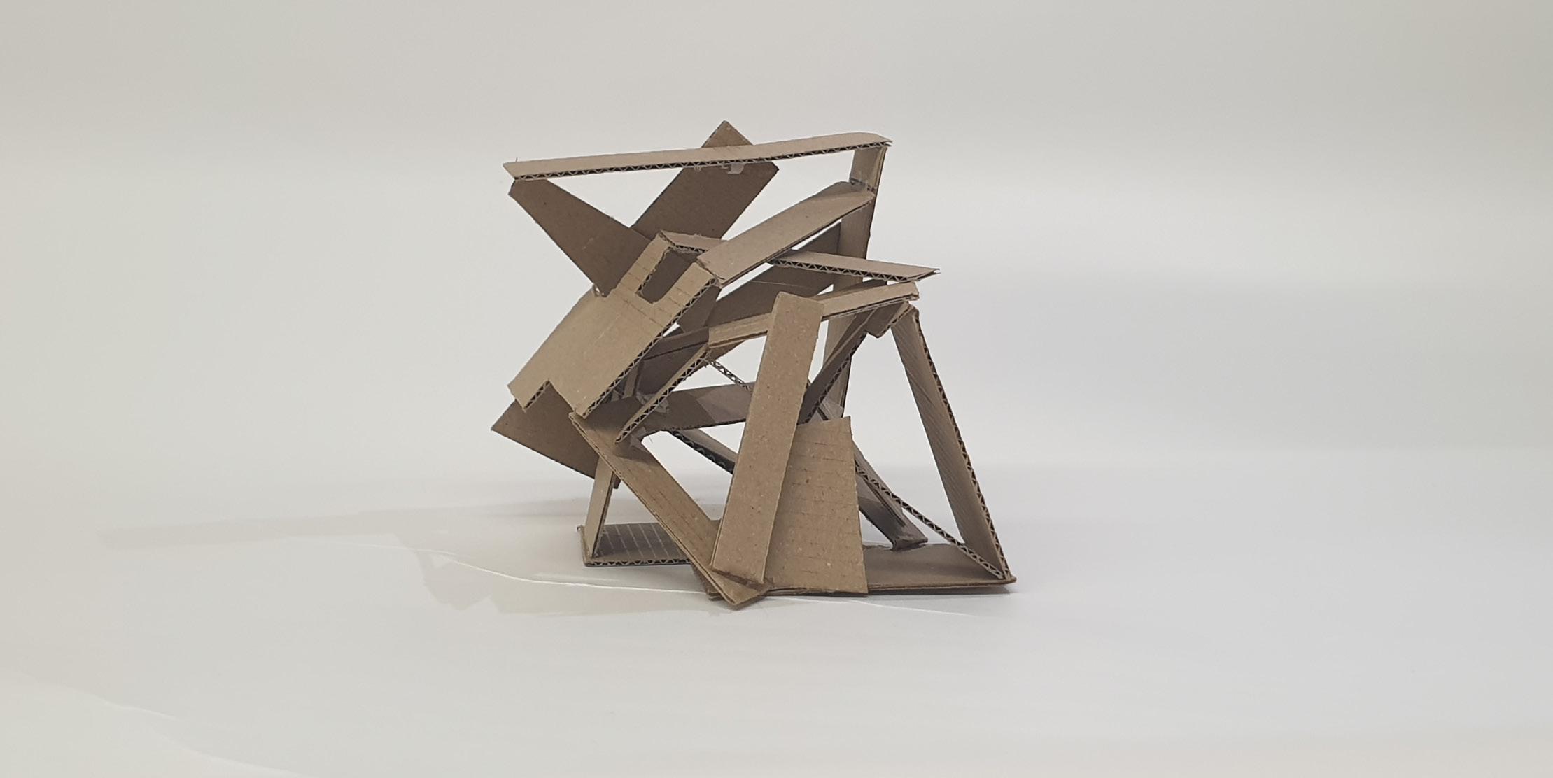 Considering this is my final model, I wanted it to have a bit of everything the other four models had. I wanted to show light and shadows in tight and big spaces and create a hierarchy in spaces.I liked how the triangles looked in my second model, so I reused them a lot in this model. So, I made small triangles to show tight spaces and how different shapes can affect the model. Because of the sharp edges on the outside, this model does not require a base and can stand in any direction.