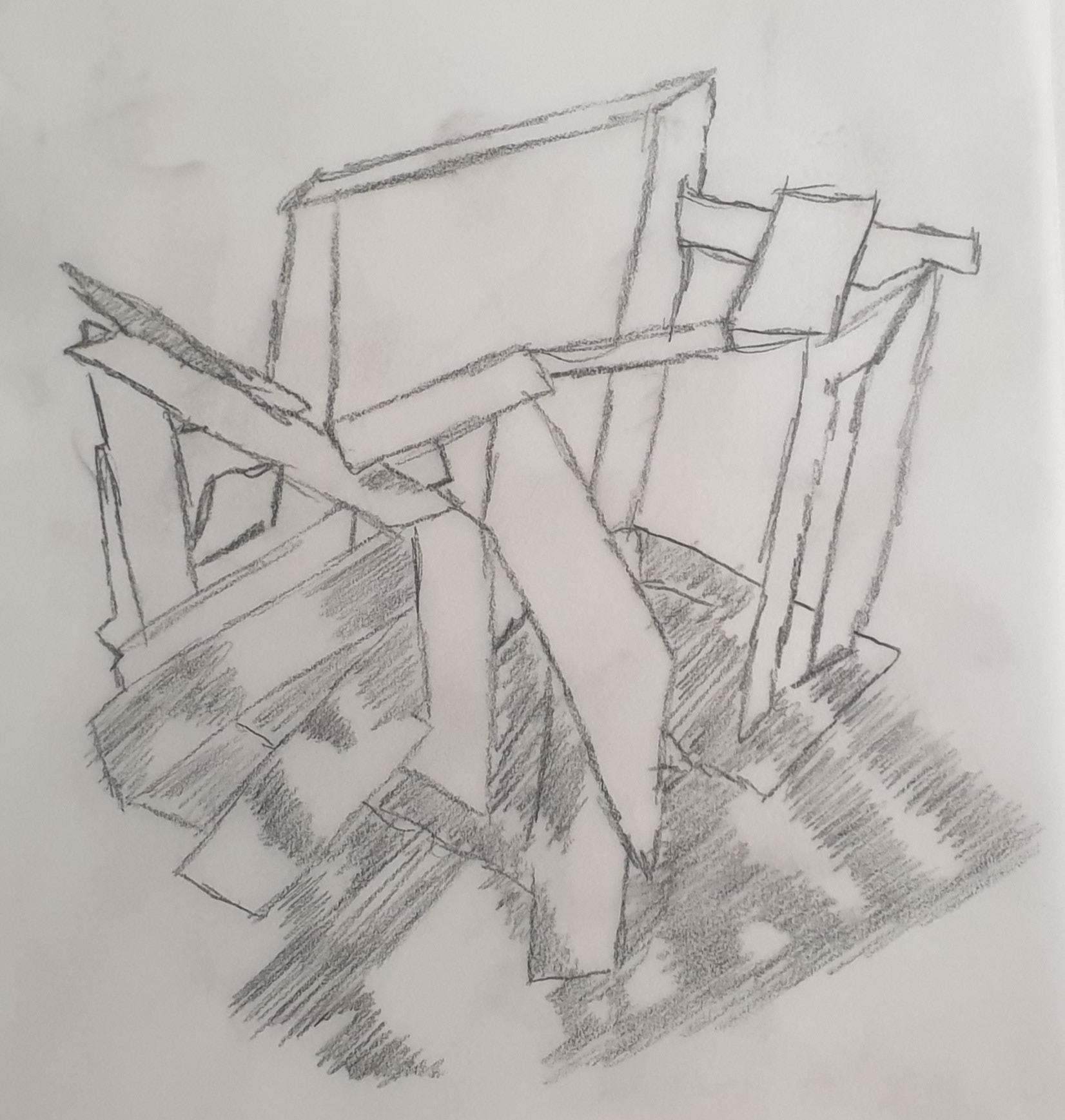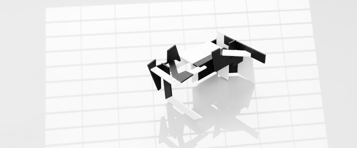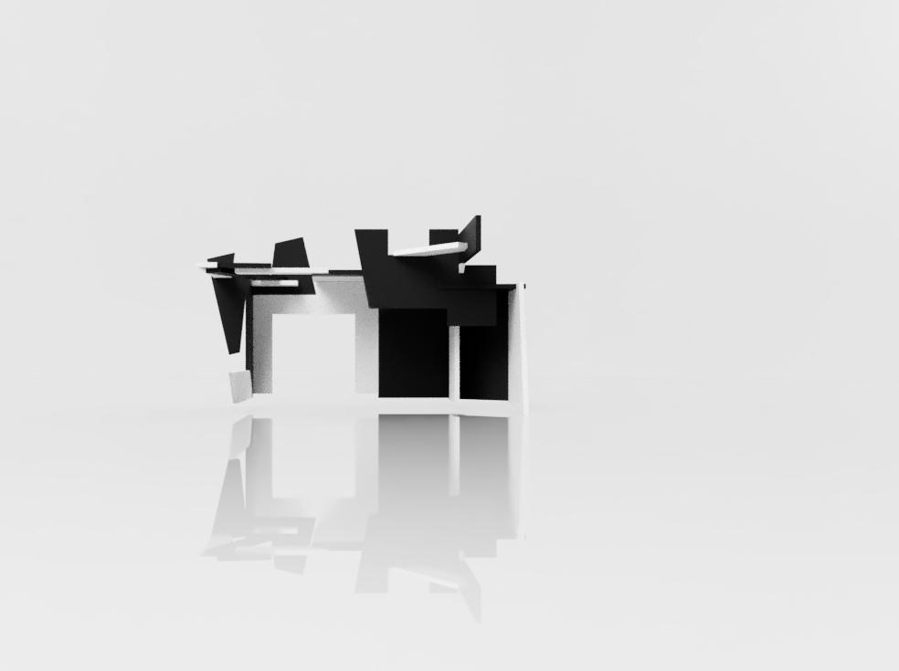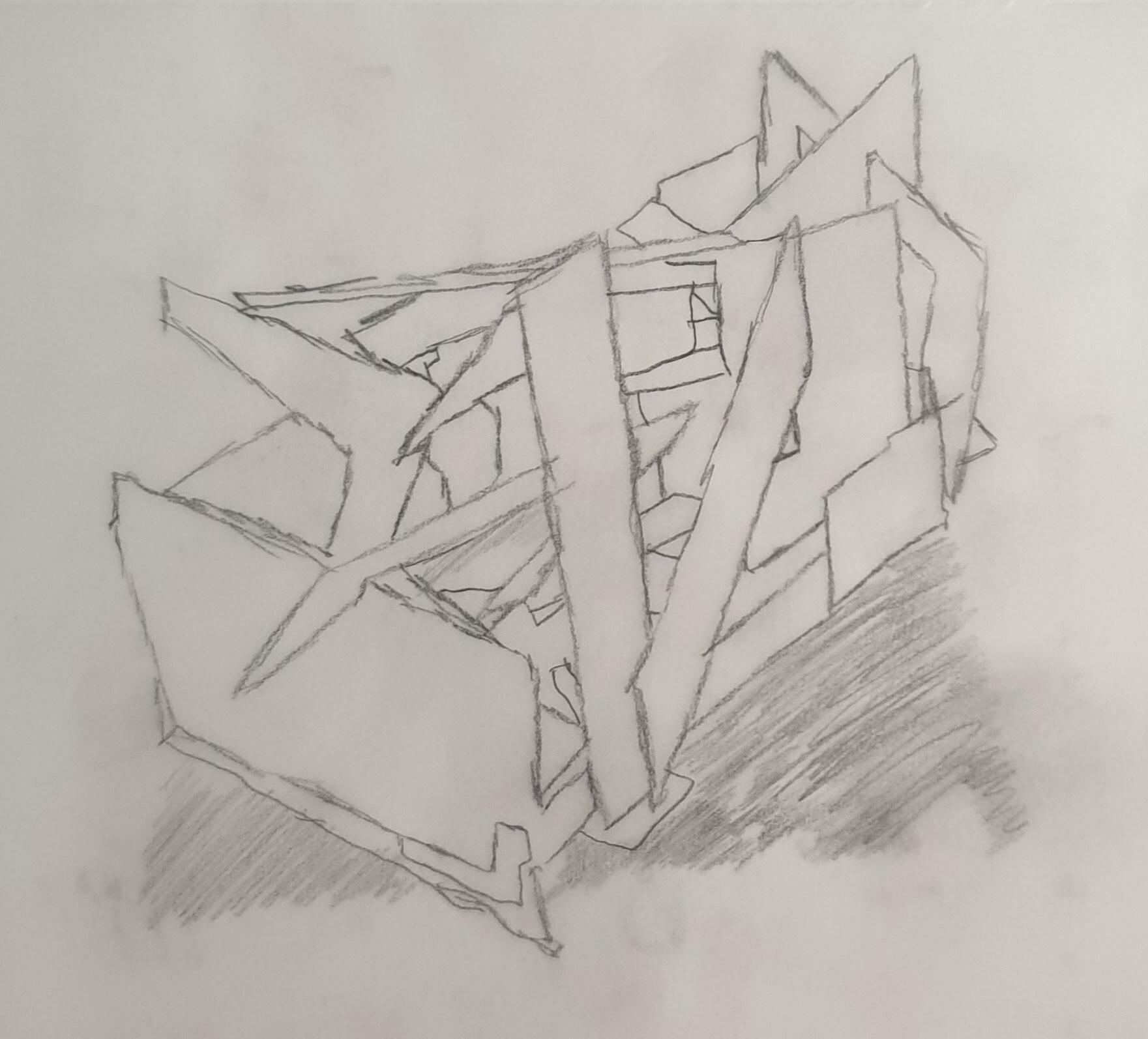 Considering this is my final model, I wanted it to have a bit of everything the other four models had. I wanted to show light and shadows in tight and big spaces and create a hierarchy in spaces.I liked how the triangles looked in my second model, so I reused them a lot in this model. So, I made small triangles to show tight spaces and how different shapes can affect the model. Because of the sharp edges on the outside, this model does not require a base and can stand in any direction.