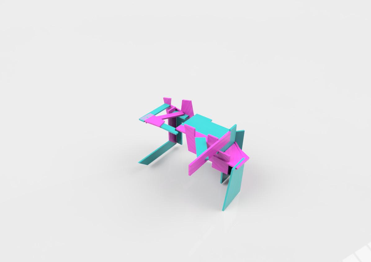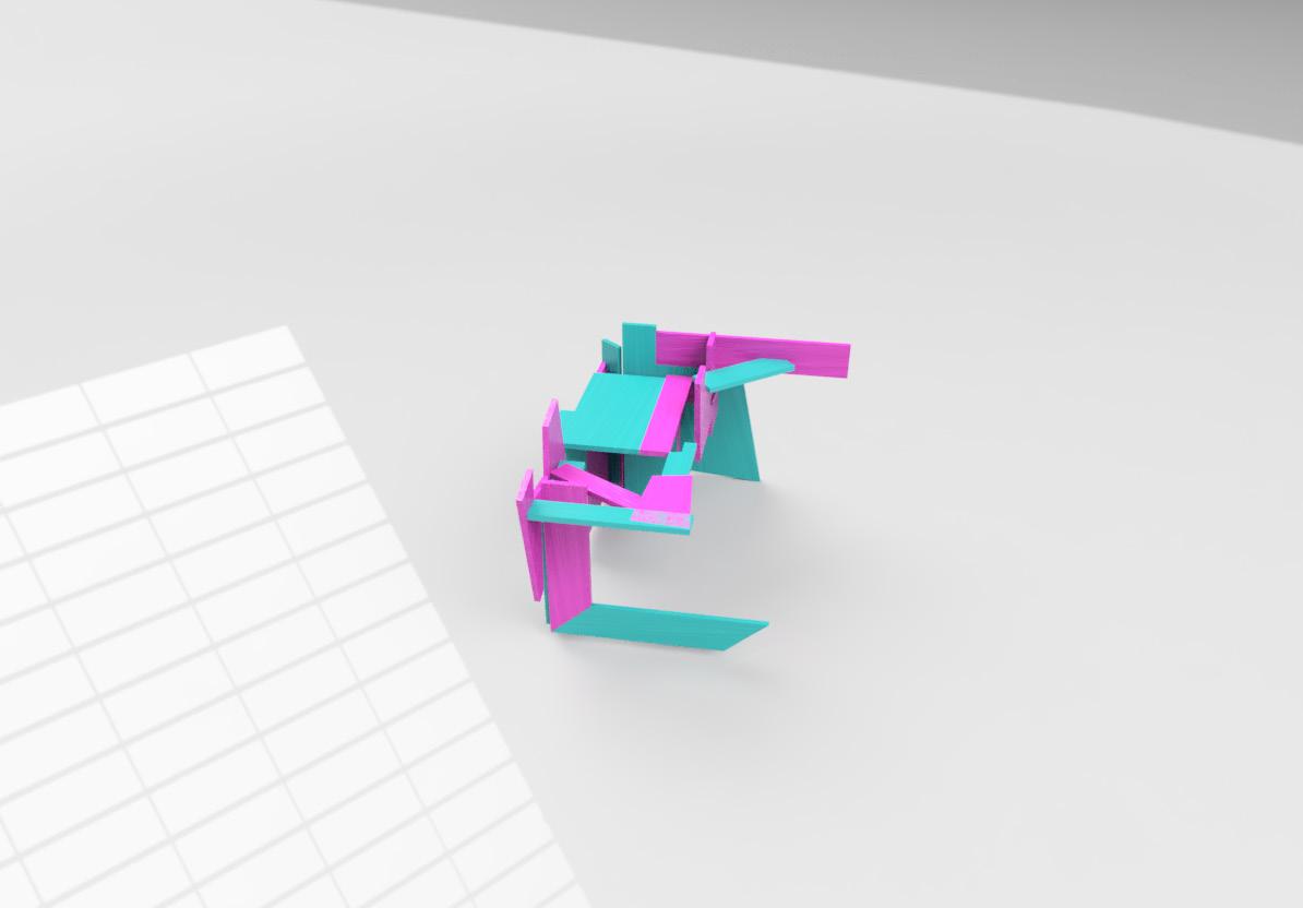 I wanted this model to have the shapes of model 2 and space model 1. So, when placing the pieces, I made the base first so I would know how much space I had to build inside it. Then I began creating small pockets of space by trying out different pieces together. The pieces with multiple sides were the hardest to place, as it was hard to find another piece that worked with them. So, I combined them with another shape to make them suitable, and then I added them to the full model. With the straight pieces, I made little bridges, creating one side to another, which created little triangular and square shapes.