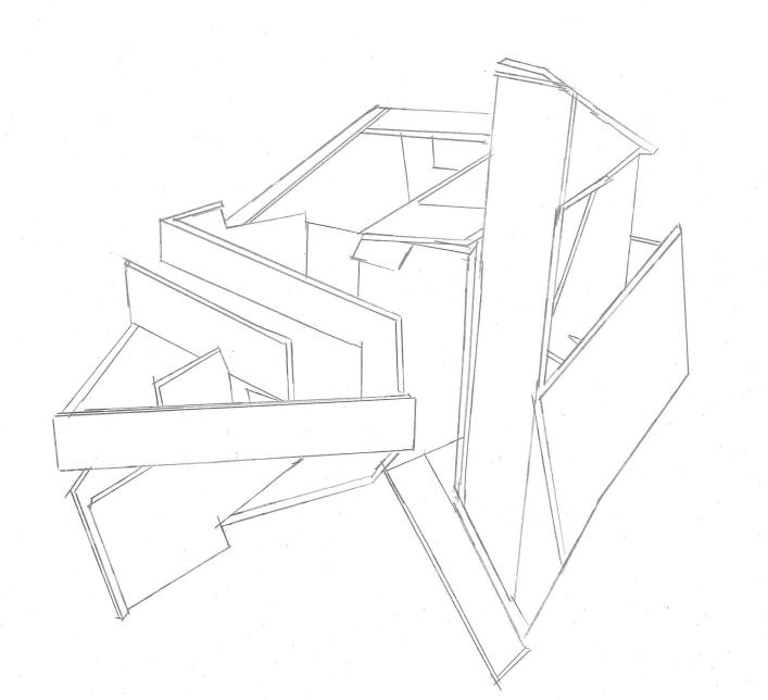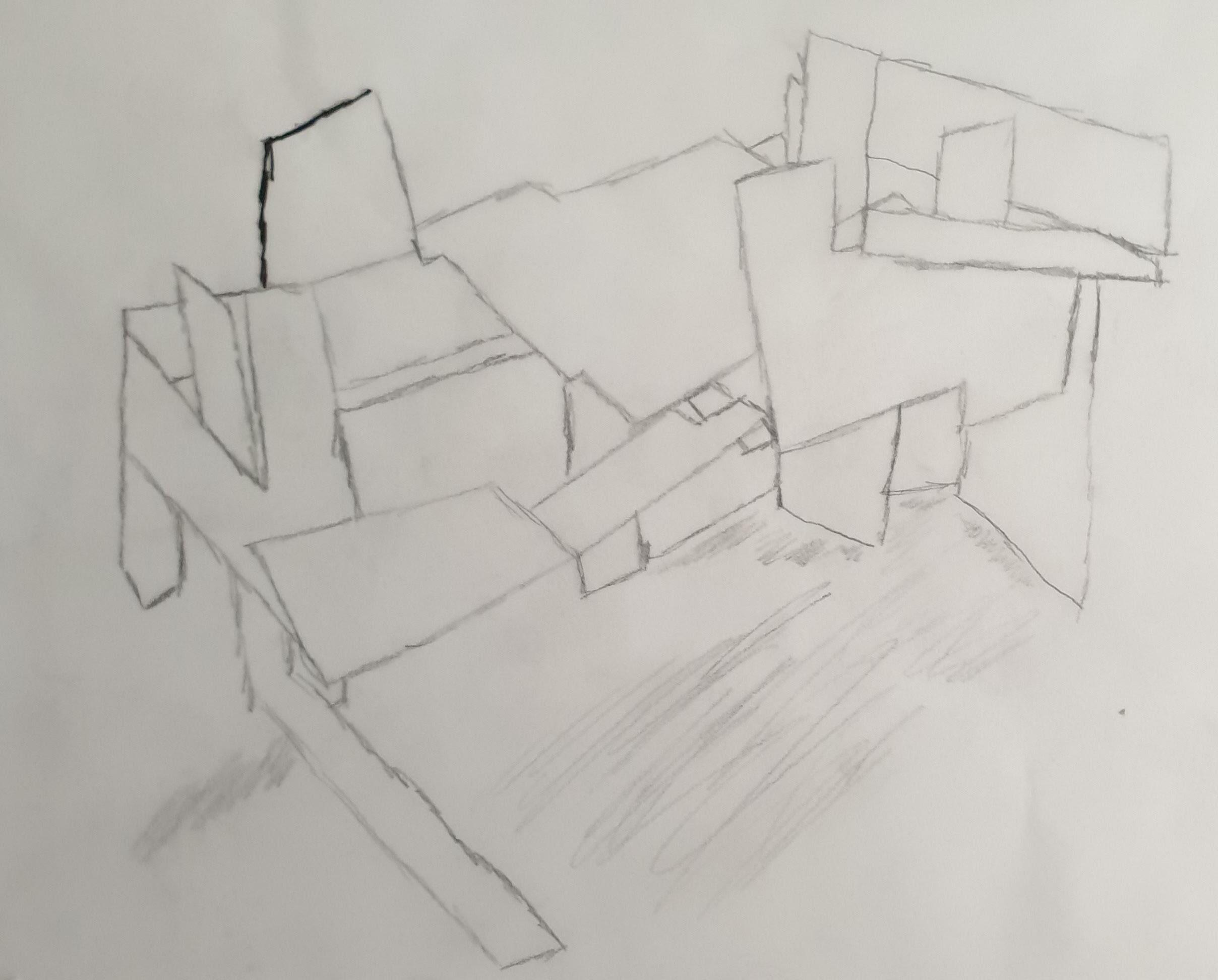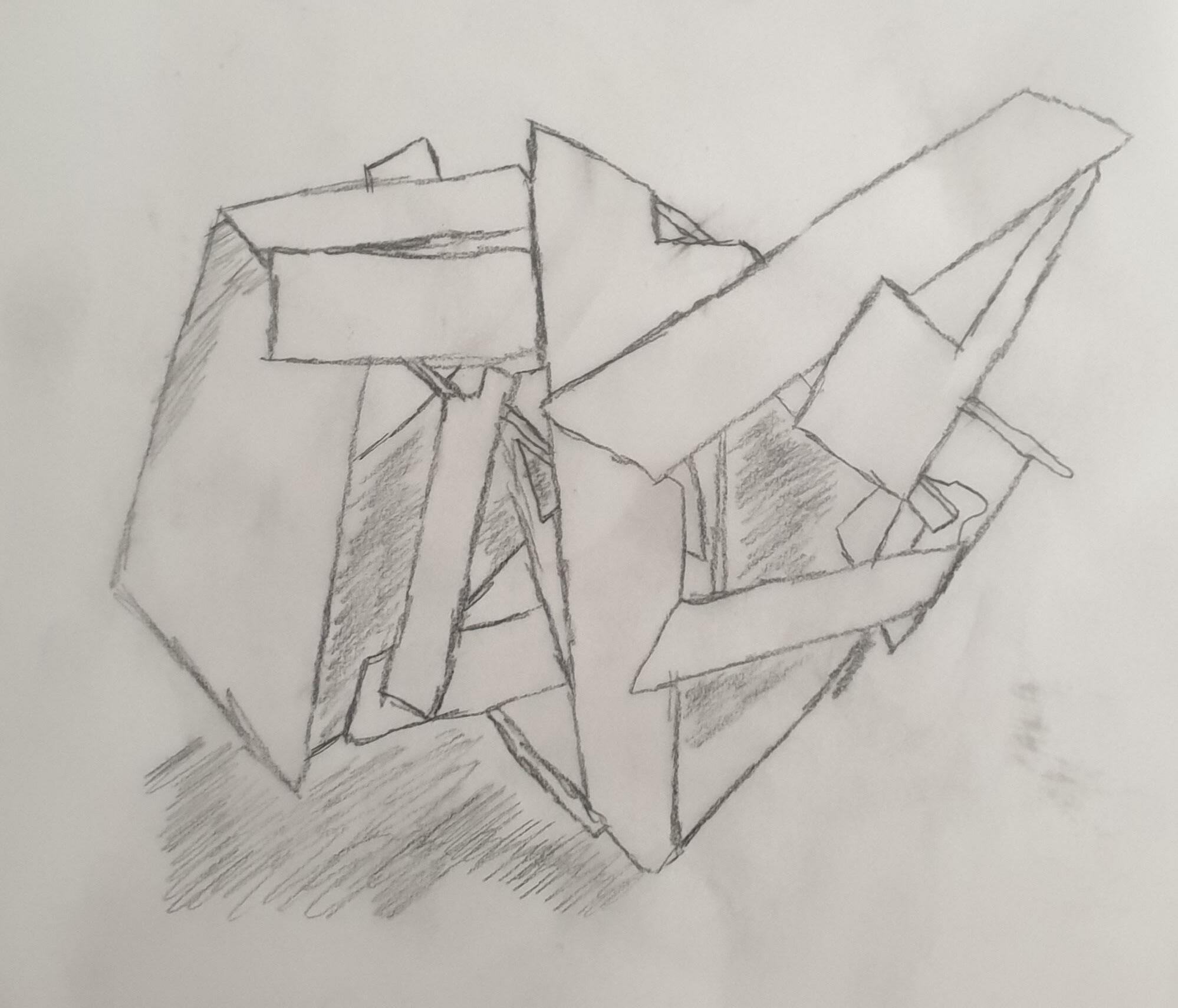 I liked how the triangles looked in my second model, so I reused them a lot in this model. So, I made small triangles to show tight spaces and how different shapes can affect the model.