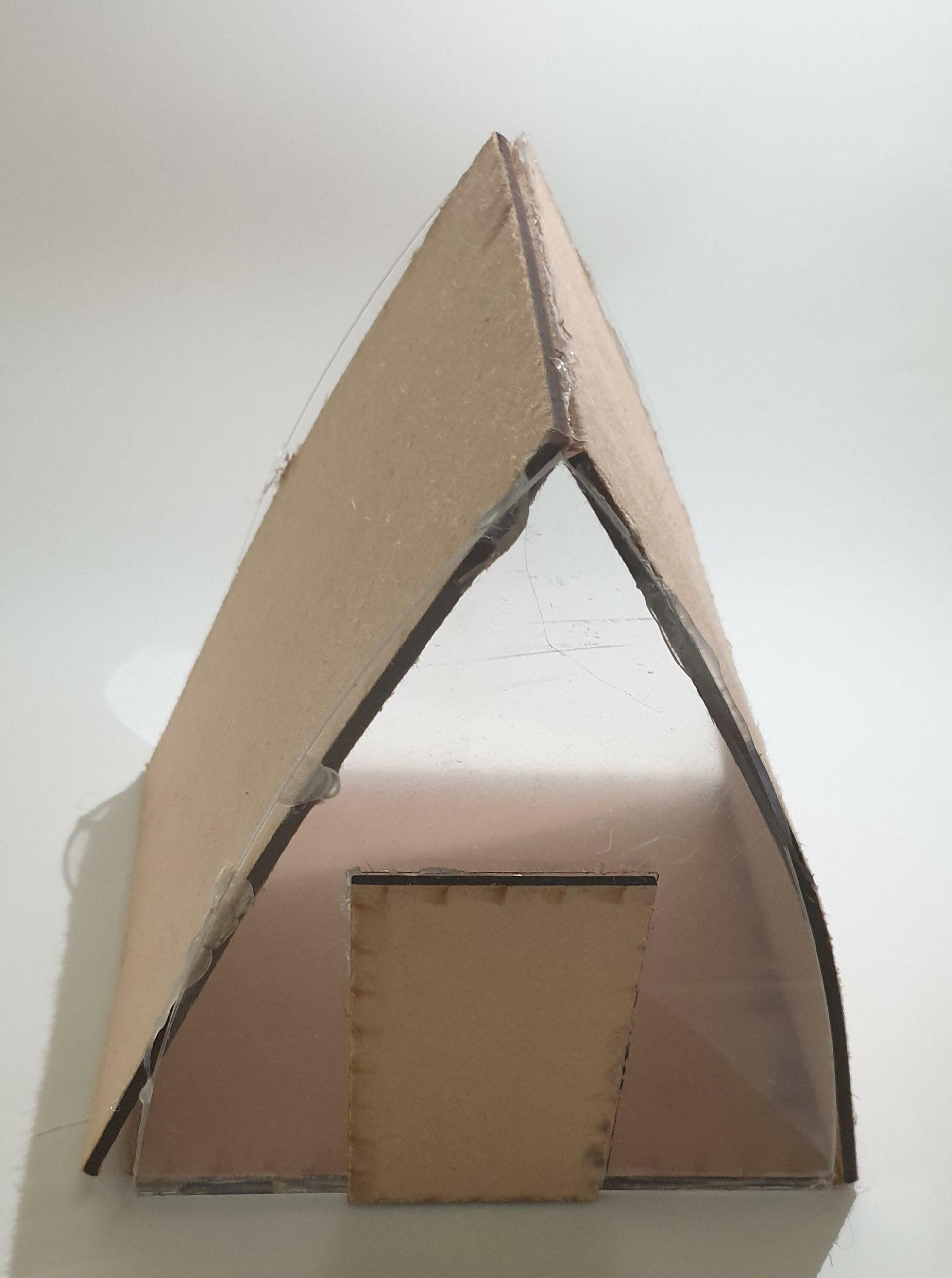 By creating different-sized triangles made my model look unique because we rarely see houses or rooms made of triangles from all sides without any other shape.