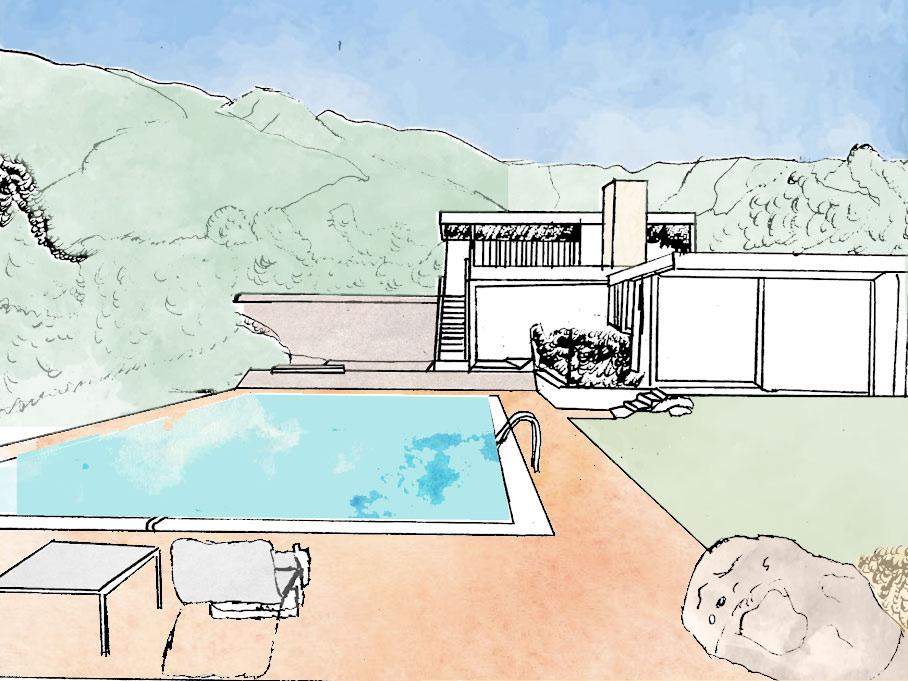 The Kaufmann House distils space in the silver-plated horizontal planes that rest atop transparent glass panes.