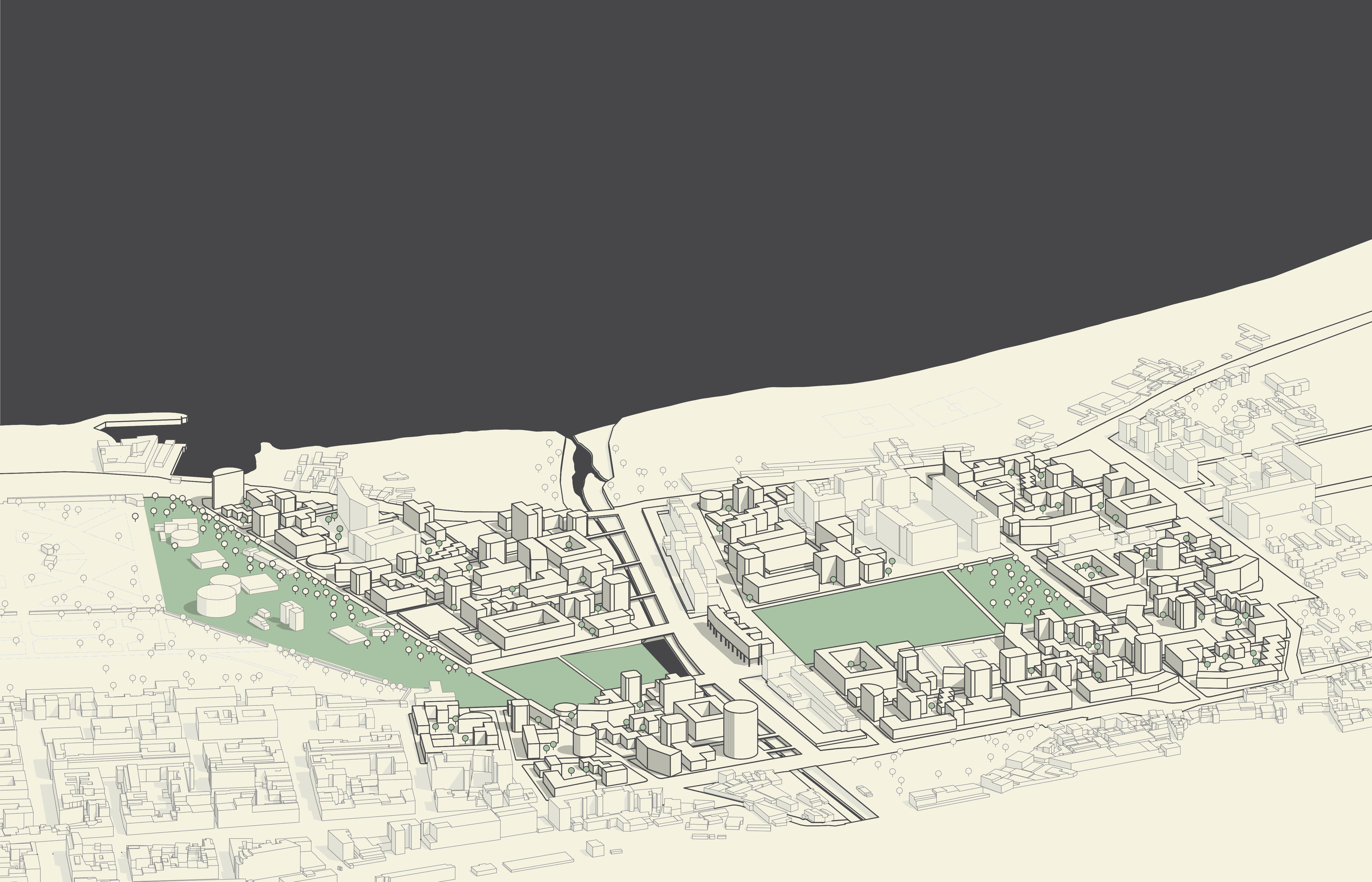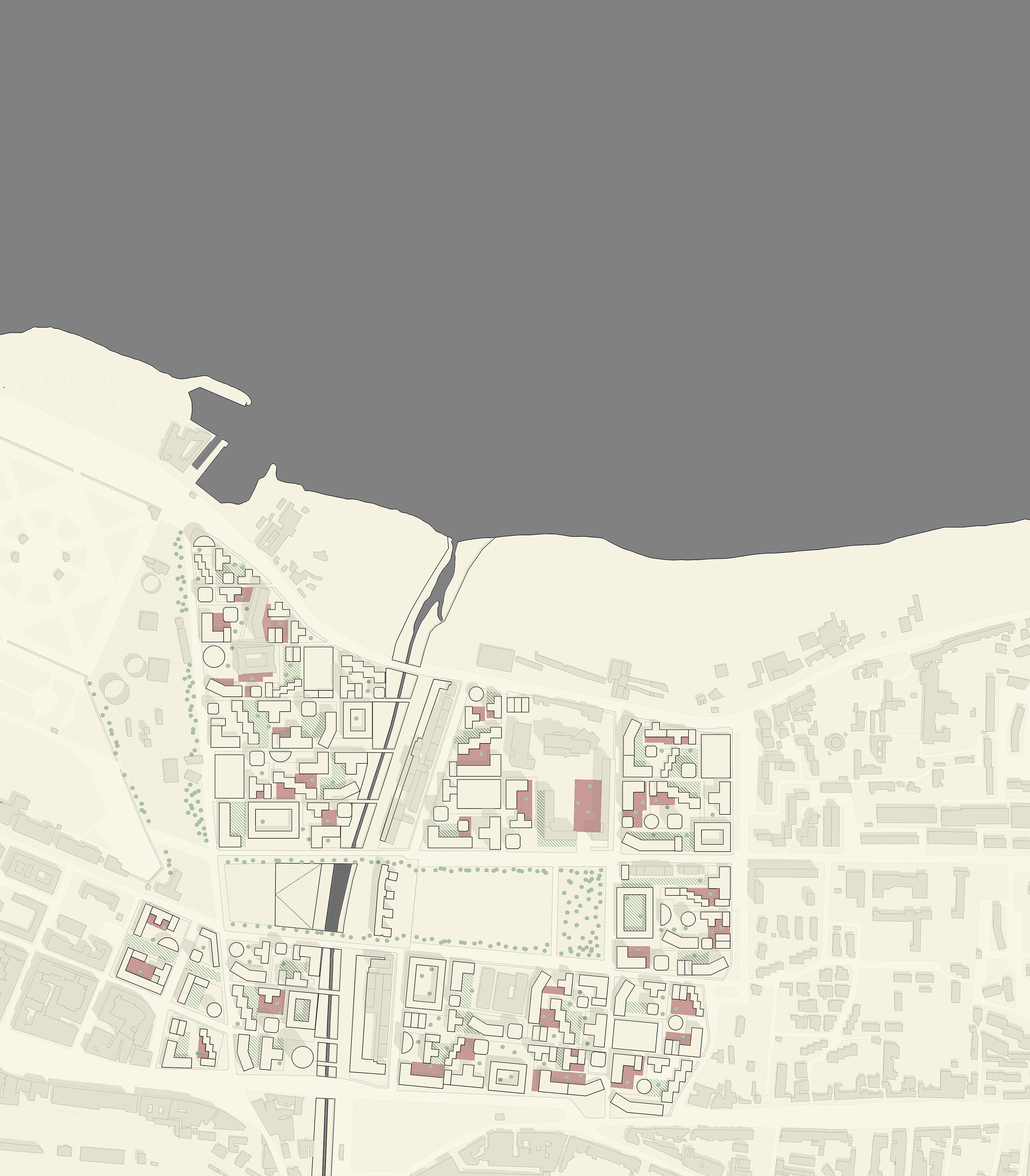 Die Zone wird im Zuge des Entwurfes dicht bebaut, um eine erhöhte Frequenz zu schaffen, bietet aber auch einen Mehrwert durch öffentliche Räume. Charakteristika der umgebenden Strukturen werden aufgegriffen, so wird beispielweise der scheinbar willkürlichen Stadtentwicklung ein System zugeschrieben.