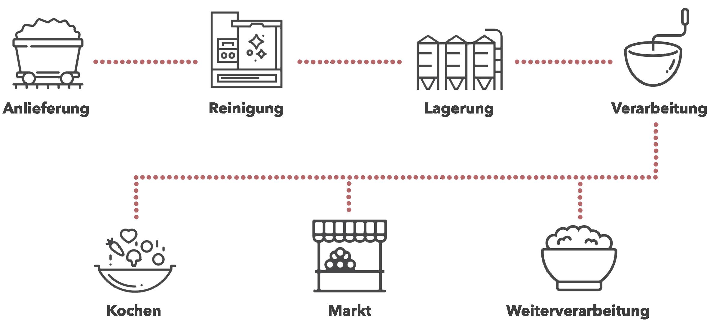 Beschaffung, Zubereitung und Genießenalles passiert am selben Ort.