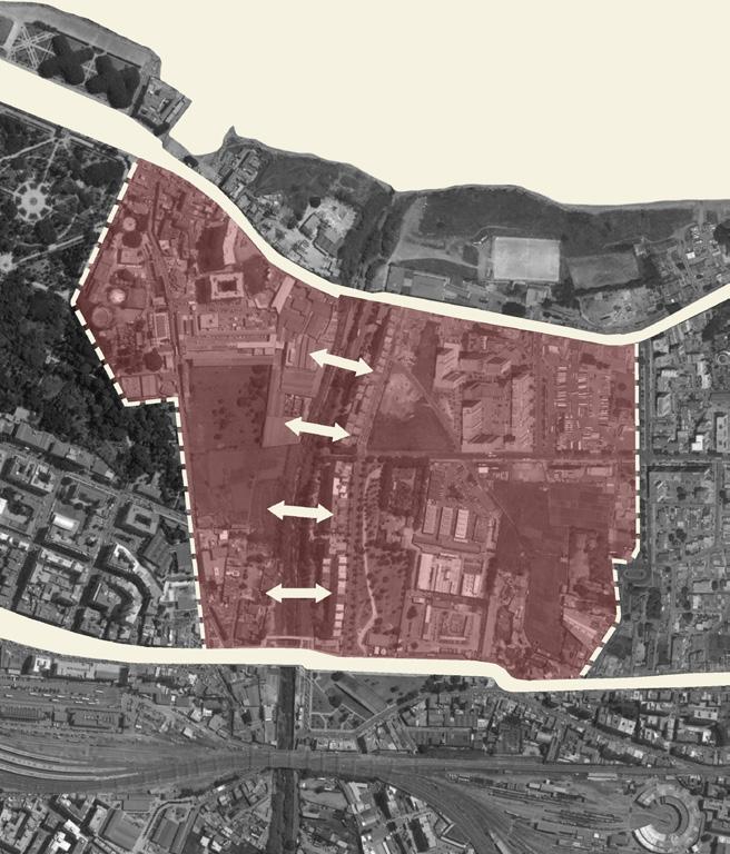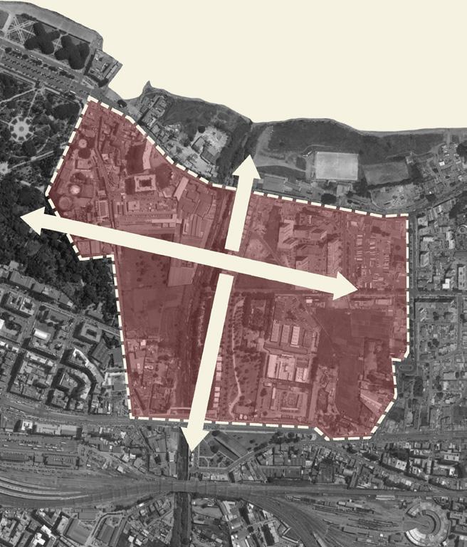 Die gewählte Fläche erstreckt sich zwischen zwei stark befahrenen Straßen, die das Gebiet eingrenzen und als Zugangspunkte zu dem Gebiet dienen. Die Altbauten mit den historischen Gärten bilden den nördlichen Abschluss des Gebiets, während sich die Fläche im Süden bis zur Via Salvatore Cappello, einer Querstraße erstreckt.