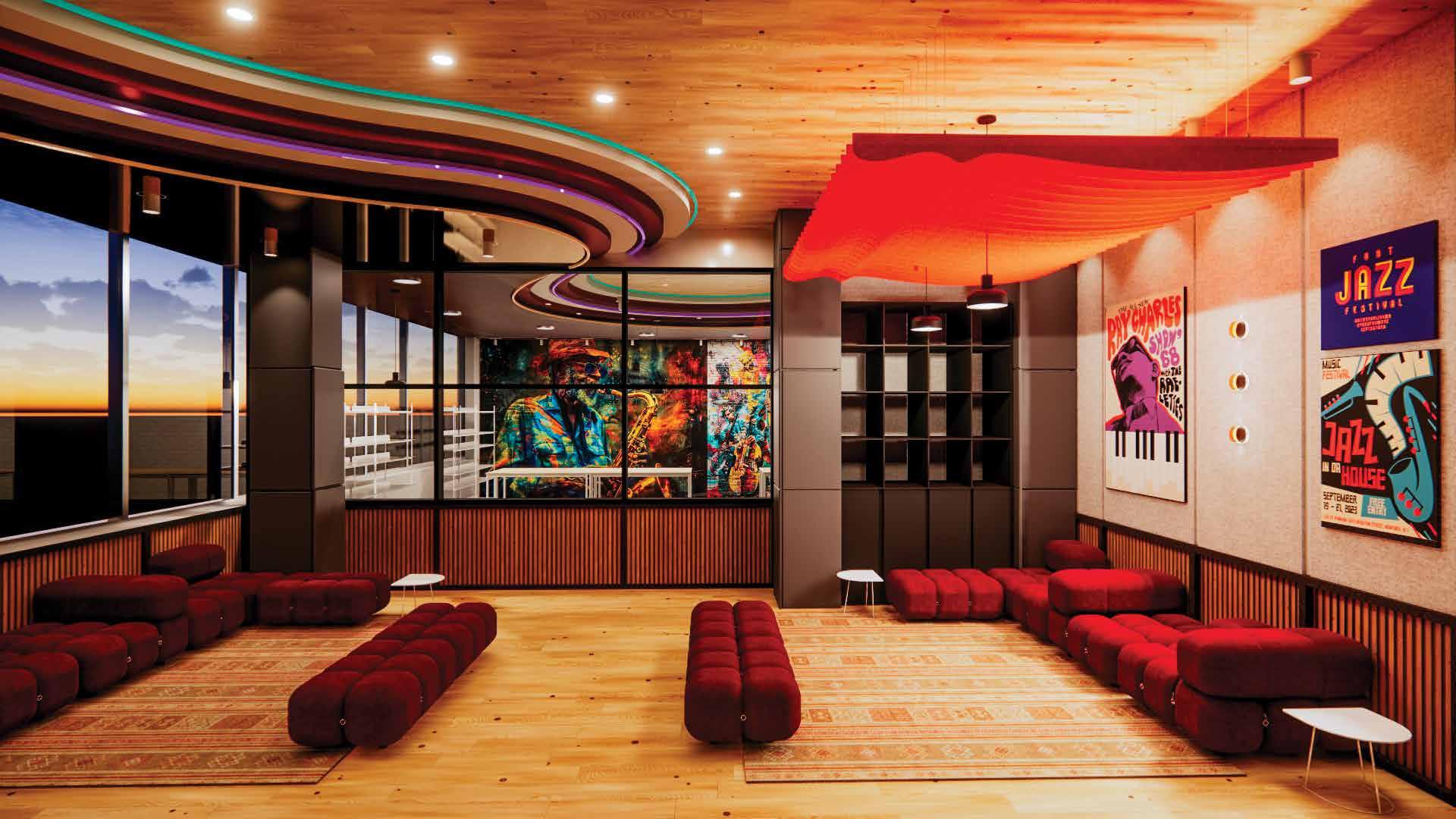 The community center goal is to bring the connection and belonging through wellness, learning, and cultural spaces. Inspired by Brookyln’s local history and jazz, it welcomes travelers, students, and artists. The design promotes health, safety, and community pride.