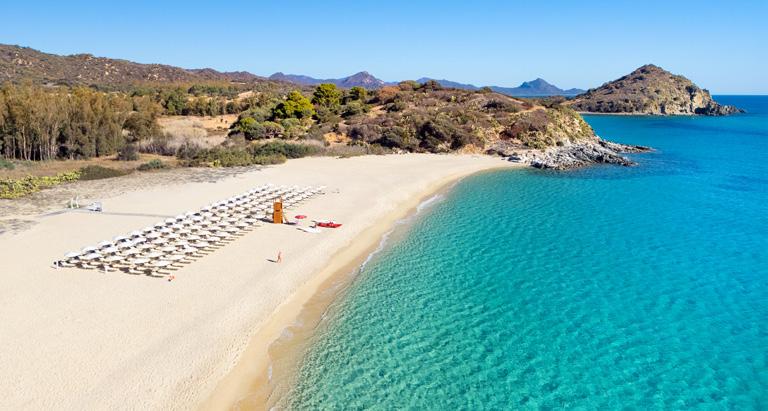 Eingebettet in die sardische Natur der aussergewöhnlichen Region Chia finden Sie Ruhe und Erholung in diesem charmanten Resort. Das elegante Hotel liegt in leichter Hanglange und bietet einen umwerfenden Blick auf die kleine Bucht. Der Strand (Kies/Steine) ist ca. 200 Meter entfernt und über einen kleinen Weg bequem erreichbar. Die Traumstrände von Chia sind nur 200 bis 4 km entfernt. Geniessen Sie das kulinarische Angebot, den Komfort des Hotels, den Ausblick und die wunderbare Umgebung, die zu Wanderungen entlang der Küste einlädt.