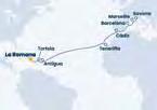 Reiseverlauf: Abflug nach La Romana/Dom. Republik, Transfer zum Hotel – 6 Nächte Badeaufenthalt – La Romana/Dom. Republik, Transfer & Einschif fung – Roadtown/Tortola/Brit. Jungferninseln – St. John‘s/Antigua – Atlan tiküberquerung – St. Cruz/Teneriffa/Spanien – Cádiz/Spanien – Barcelona/ Spanien – Marseille/Frankreich – Savona/Italien, Ausschiffung, Transfer nach Mailand & Rückflug