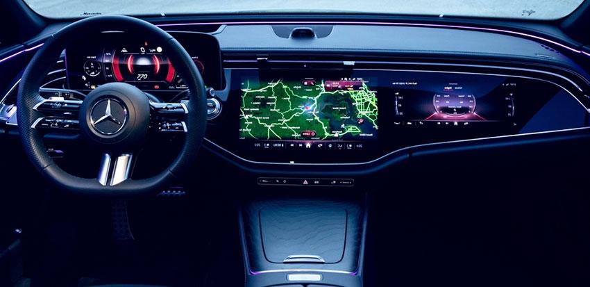En su interior, Mercedes ha llenado el Clase E con tecnología para entretener, involucrar y proteger. Una pantalla de instrumentos de 12,3 pulgadas ofrece un efecto de profundidad 3D, característica que se nota a través de un diseño más fácil operar directamente desde el de inicio.