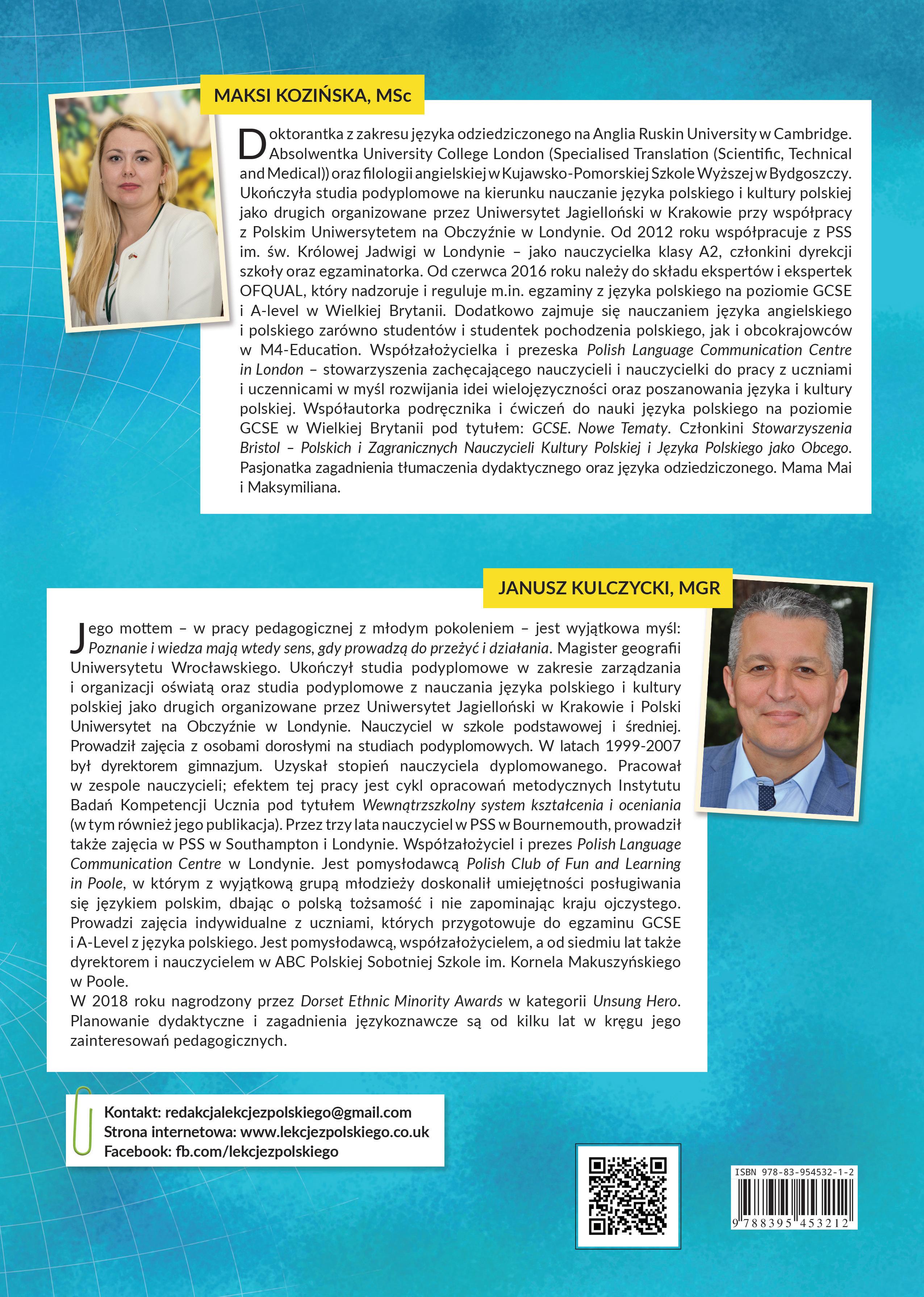 The coursebook is aimed at learning Polish as a heritage language and culture for students at the end of KS2 and the beginning of KS3, consistent with the core curriculum for Polish students studying abroad and adapted to the British exam in Polish as a foreign language at the GCSE level.