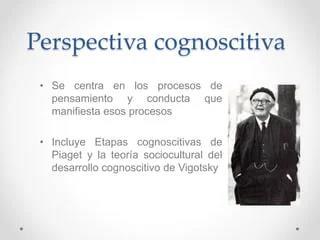 Perspectiva Constructivista: Esta perspectiva se centra en el papel activo del estudiante en la construcción de su propio conocimiento. Se enfoca en la interacción entre el estudiante y su entorno, fomentando el aprendizaje significativo y la resolución de problemas.