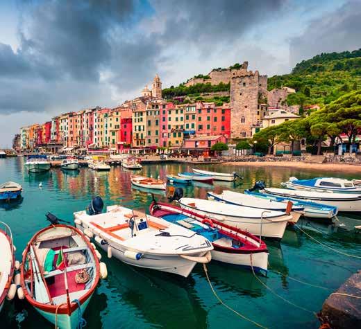 Waar grote cruiseschepen aanmeren in de havenstad La Spezia met haar marinebasis, wijken de wat meer exclusieve schepen uit naar Portovenere. Dit ‘picture perfect’ stadje lijkt rechtstreeks uit een sprookjesboek te zijn gekomen met pastelkleurige gebouwen die tegen de rots aangeplakt staan. Dwaal door de steile steegjes, flaneer over de boulevard en neem zeker een bootje naar het majestueuze Cinque Terre. Wij stapten uit in het onmogelijk pittoreske dorpje Vernazza en liepen terug naar ons schip dat voor anker lag bij Portovenere.