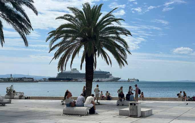 ‘Hoe kan iemand dit nou niet leuk vinden?’ verzucht VCK Cruise Expert Harriet als ze aan de reling staat van de gloednieuwe Allura van Oceania Cruises bij het zonovergoten vertrek uit Split, Kroatië. Harriet is samen met collega Bregitta naar Genua gevlogen om daar in te schepen op de Allura. De dag ervoor werd het schip officieel afgeleverd aan Oceania Cruises, en het is heel bijzonder om als eerste gasten uitgenodigd te worden voor een korte cruise naar Split en Trieste.