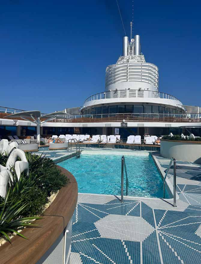 Aquamar Kitchen is een restaurant met een menu waar de nadruk op gezond en licht eten wordt gelegd; geen andere rederij heeft het. Onze tip: de pannenkoekjes bij het ontbijt en de poke bowl bij de lunch! Na een uitgebreide lunch is het slechts enkele stappen lopen naar het zonnedek met een behoorlijk groot zwembad en twee Jacuzzi’s. Ook hier comfortabele ligbedden en obers die op verzoek veelkleurige drankjes bezorgen.