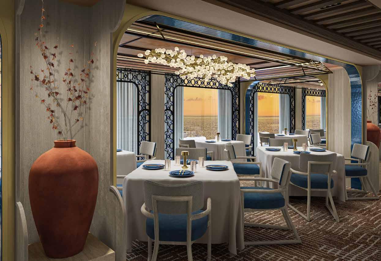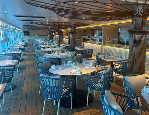 Regent Seven Seas Cruises een elfde (inbegrepen) eetgelegenheid toe. Azure belooft een blikvanger te worden met een indrukwekkende kroonluchter en een sfeer die associaties oproept met het MiddenOosten. De menukaart is een bonte mengeling van kleine gerechten uit landen rond de Middellandse