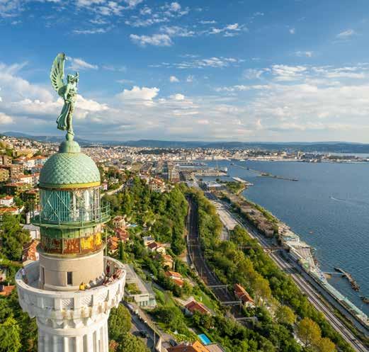 De ‘on-Italiaanse’ bouwstijl met rechte straten, statige gebouwen en grote pleinen verraadt dat Triëst lange tijd onderdeel was van het Habsburgse rijk. In deze stad is koffie drinken tot een kunst verheven; het is de bakermat van het bekende koffiemerk Illy . Aan de brede boulevards en indrukwekkende pleinen vind u veel mooie winkels met terrassen waar een Negroni extra lekker smaakt. Bezoek het mooie Castello Miramare of hop de grens over naar het prachtige Sloveense stadje Piran.