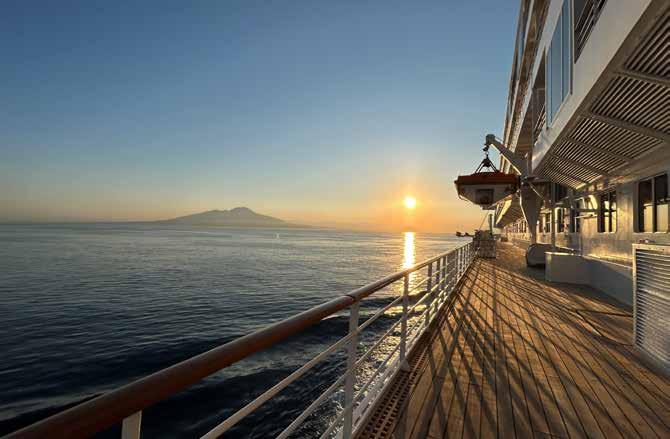 Matsuhisa. Als we zichtbaar keuzestress hebben bij het zien van het enorme menu, stelt onze ober voor om een selectie aan voorgerechten met de tafel te delen. Schaal na schaal met de meest exquise sushi en sashimi wordt voor ons neergezet, begeleid door Nobu’s eigen (heerlijke) witte wijn. Tijdens het eten valt het zeldzaam stil aan tafel: met z’n vieren zitten we volop te genieten. In alle vroegte legt de Crystal Symphony aan in Monte Carlo, Monaco. Het einde van deze cruise is al net zo ontspannen als het begin: geen omroepberichten, rustig ontbijten in het Waterside Restaurant. We zijn het roerend eens: wat is dit een fantastische manier van reizen! n