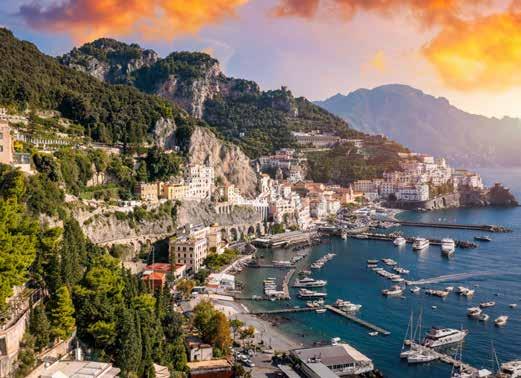 De volgende ochtend glijdt de Crystal Symphony bij het licht van de ochtendzon naar haar ankerplaats bij Sorrento. Hier stappen we over op een snelle ferry die ons in 25 minuten naar het schitterende eiland Capri brengt. Met minibusjes (grotere voertuigen passen hier niet) bezoeken we de dorpen Anacapri en Capri. De dorpjes en het uitzicht zijn zó fotogeniek dat mijn fototoestel overuren maakt. Vanuit het haventje van Marina Grande varen we weer terug naar Sorrento. Ik word oprecht blij als ik mijn reisgenoten hoor zeggen dat ze uitkijken om weer naar ‘huis’ te gaan; naar ons drijvende hotel dat aan de horizon ligt te wachten. Bij het paarsige licht van de ondergaande zon stappen wij The Beef Bar binnen. We worden begeleid naar een tafeltje aan het raam. Het uitzicht is net zo mooi als de menukaart en de (inbegrepen) wijn die hier wordt geschonken. We proosten op een onvergetelijke eerste dag. Amalfi is een van mijn meest favoriete bestemmingen in Zuid-Europa. De Crystal Symphony gaat ’s morgens vroeg voor anker en het ‘picture perfect’ stadje ligt als een schilderij voor ons. Ontbijt op het achterdek onder de parasol, met versgeperste jus d’orange en een extra sterke cappuccino van de barista. Daarna brengt een tenderboot me naar het centrum van Amalfi. De ware schoonheid