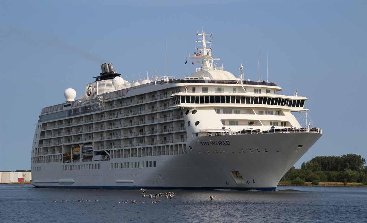 Voor échte cruisefans is het de ultieme droom; wonen op een cruiseschip. In 2002 kwam die droom uit voor een paar honderd gelukkigen toen The World haar debuut maakte. Dit 43.000 ton grote schip beschikt over 165 ruime appartementen die gekocht zijn door een zeer internationale clientèle. Zie het als een zeewaardig timeshare project. Al 23 jaar doet The World haar naam eer aan en kun je het schip spotten op de meest exotische locaties ter wereld. De ‘Vereniging van Eigenaren’ bepaalt elk jaar de route samen met het nautische team. Expedities naar exotische locaties worden afgewisseld met bezoeken aan grote steden waar het schip vaak dagen blijft liggen. Aan boord is een kleine supermarkt en veel suites beschikken over een eigen keuken. De bewoners bepalen zelf wanneer ze in- en ontschepen; voor meereizende vrienden en familie zijn extra gastensuites te boeken. We fotografeerden The World in 2018 tijdens een van haar schaarse bezoeken aan de Amsterdamse haven.