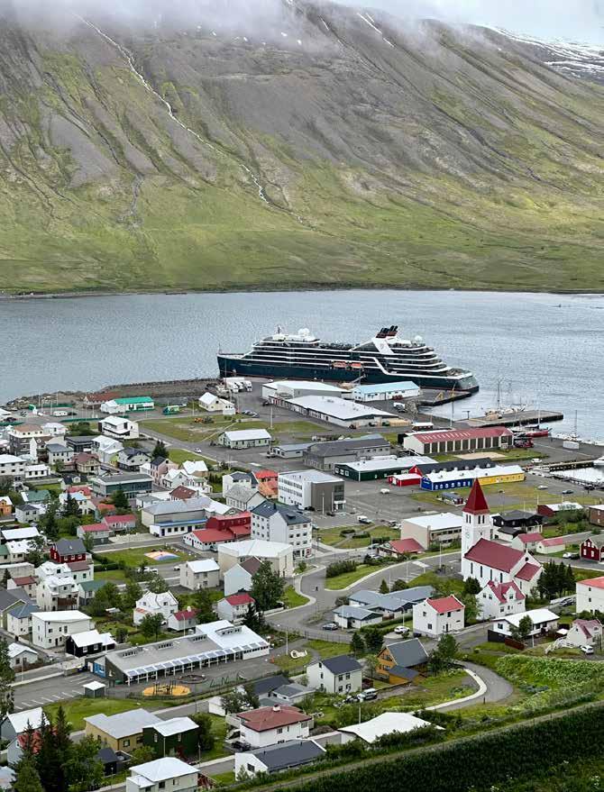 IJsland is een bestemming die door veel grote en kleine cruiseschepen wordt aangedaan. Het mooie van de Seabourn Venture is dat zij op plekken kan komen waar andere niet kunnen komen. In mijn week aan boord bezoeken we bijvoorbeeld Flatey Island, een eilandje dat bekend staat om de kleinste bibliotheek van IJsland én om de vele papegaaiduikers die er nestelen. Naast deze lieve vogels zijn er ook wat agressievere vogels die erg goed blijken in het verdedigen van hun nesten. Tip voor mezelf: ga niet alleen lopen want dan weten ze je te vinden! Een populaire bestemming in IJsland zijn de Dynjandi watervallen. Overdag is het hier, zeker in hartje zomer, best druk. Laat het aan Seabourn over om ons bezoek aan de watervallen uniek te maken. Ons schip gaat voor anker bij de voet van de waterval en het diner wordt vervroegd, waardoor we na het eten met de zodiacs (kleine rubberen boten) aan land kunnen. Vanaf het strand waar ik aan land ga loop je in een kwartier naar de voet van de 100 meter hoge waterval. We hebben ruimschoots de tijd om ook de stevige wandeling naar boven te maken. Het toeval wil dat het de langste dag van het jaar is en hier in het noorden van IJsland houdt dit in dat de zon niet ondergaat. Het is onvergetelijk.
