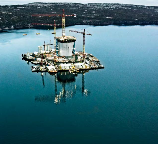 The BAF Site was the primary construction location for the Hebron project. Construction of the Gravity-Based Structure (GBS), fabrication of the living quarters and integration of the Hebron platform were performed onsite before being towed offshore. Over 132,000m3 of concrete was produced and poured for its construction. Peak workforce onsite reached approximately 4,300.