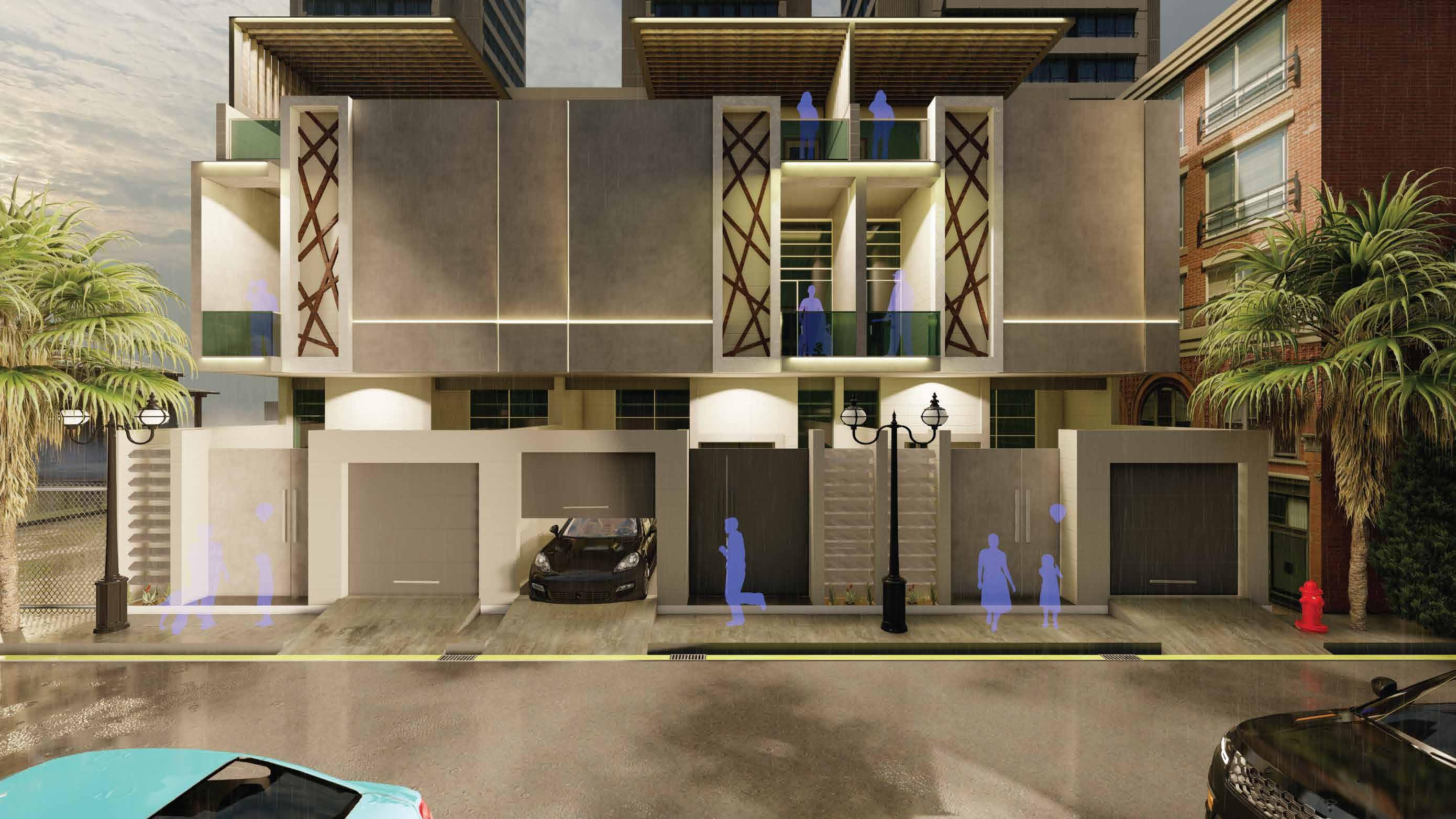 The project is a row house design for a typical Saudi family to accommodate their daily activities such as living, studying, cooking and sleeping.
