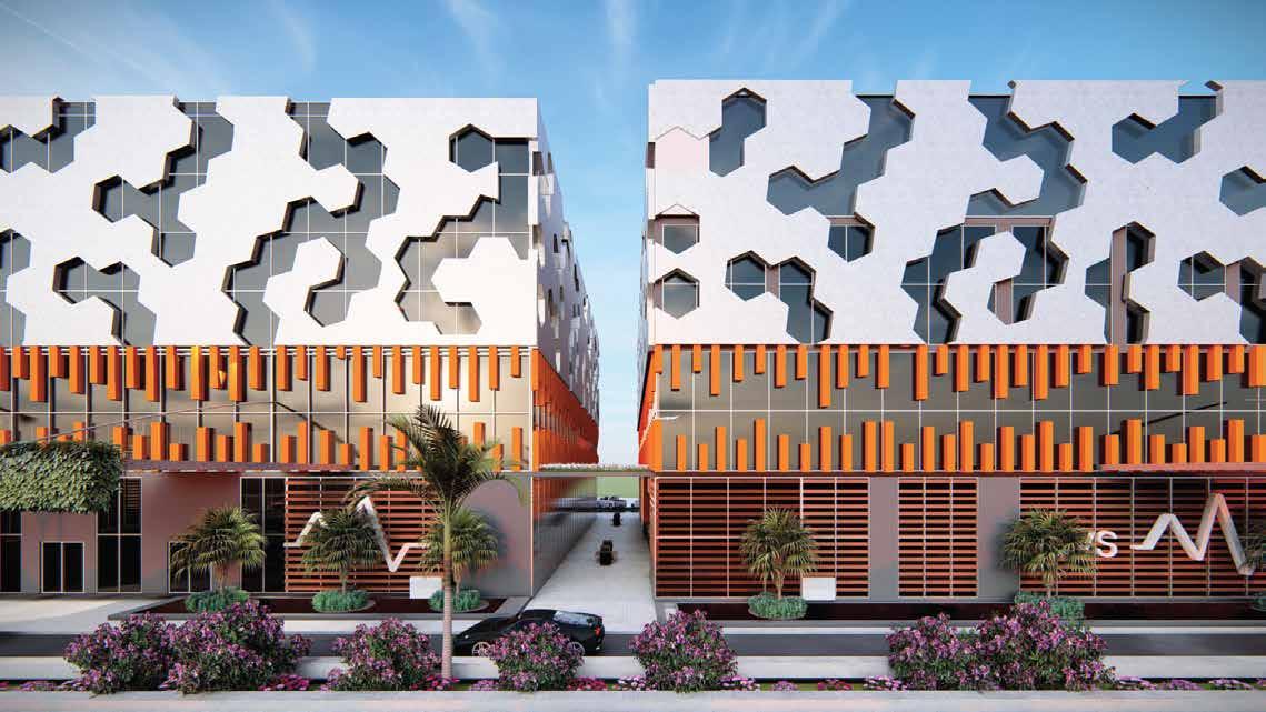 A honeycomb inspired the hexagonal shape on the facade and this shape allows a better solution for planes and curves situation. The coating was used in some moments in an opaque way and in others as semi-translucent, evoking movement between straight and curved angles. At the same time, shaping the openings sometimes explicit like in the main window and it alludes itself more discretely at times to incite visitation.