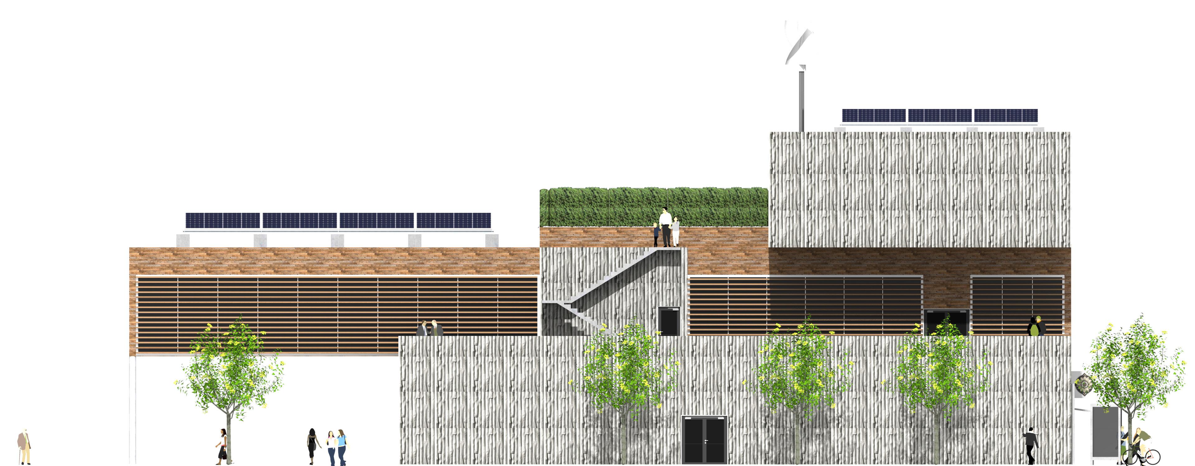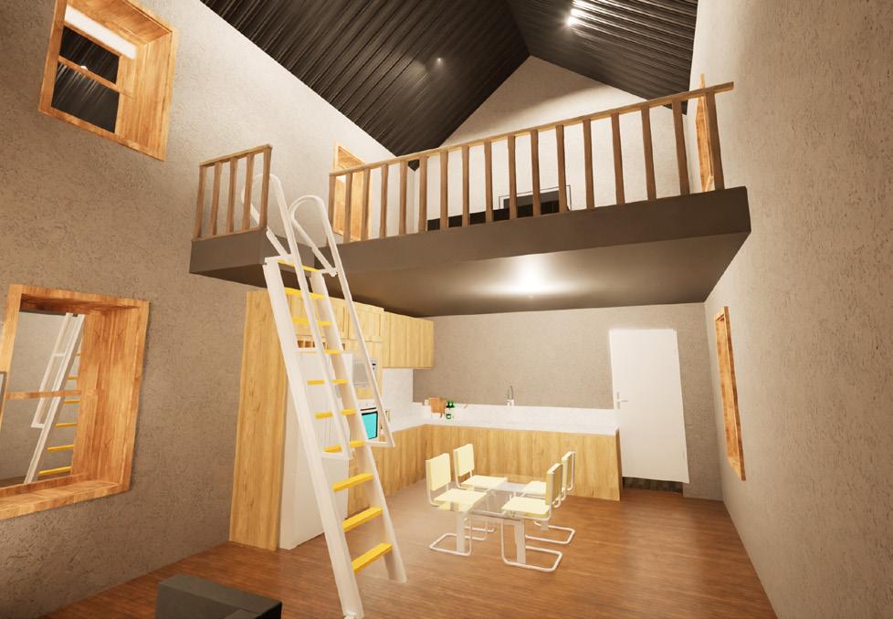 The purpose of this building is to repurpose reclaimed barn wood from surrounding torn down farms. This is done through a process of collecting the wood, cutting it down, sanding or refining it, then seeling it as is for reuse or using it for furniture and decorative designs. In having renewable energy and sustainable work inside the building, this building not only has the potential for net-zero carbon emissions but it also produces more useable material than it does waste.