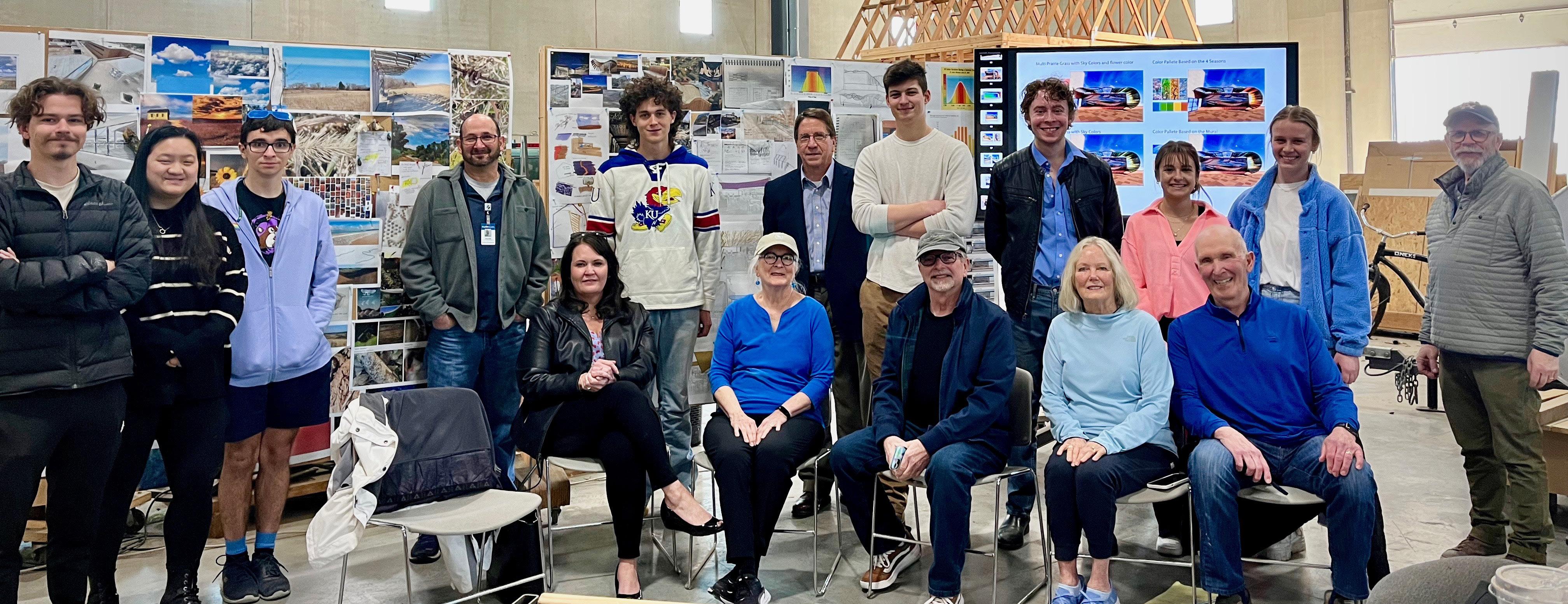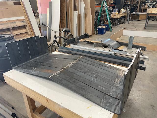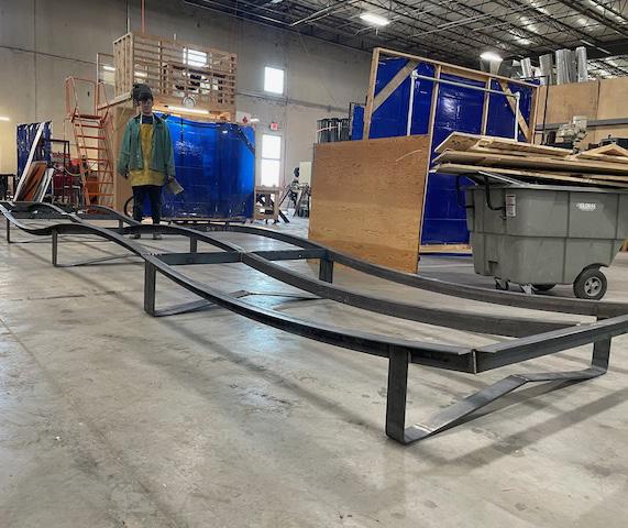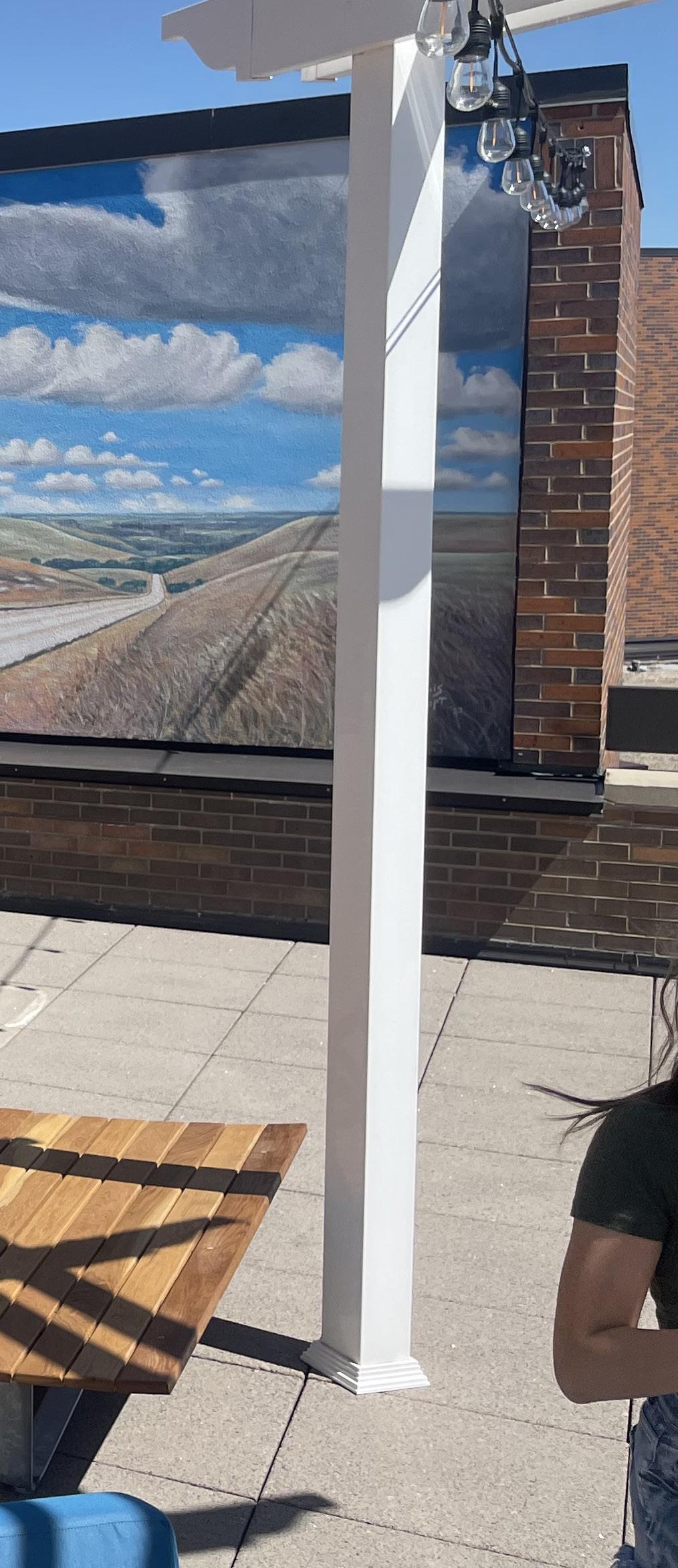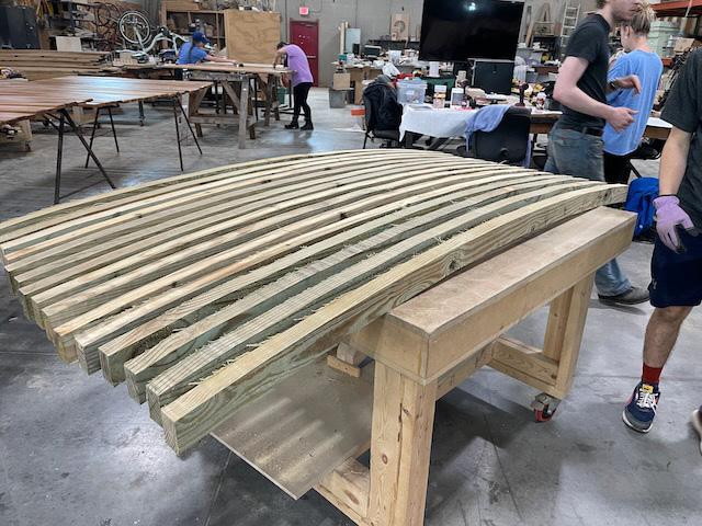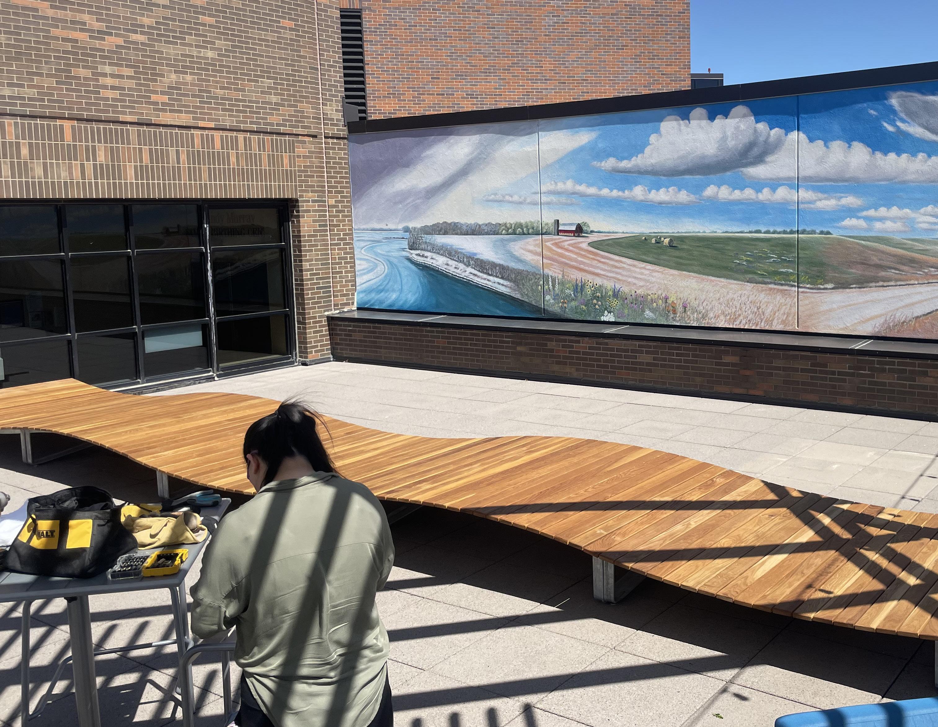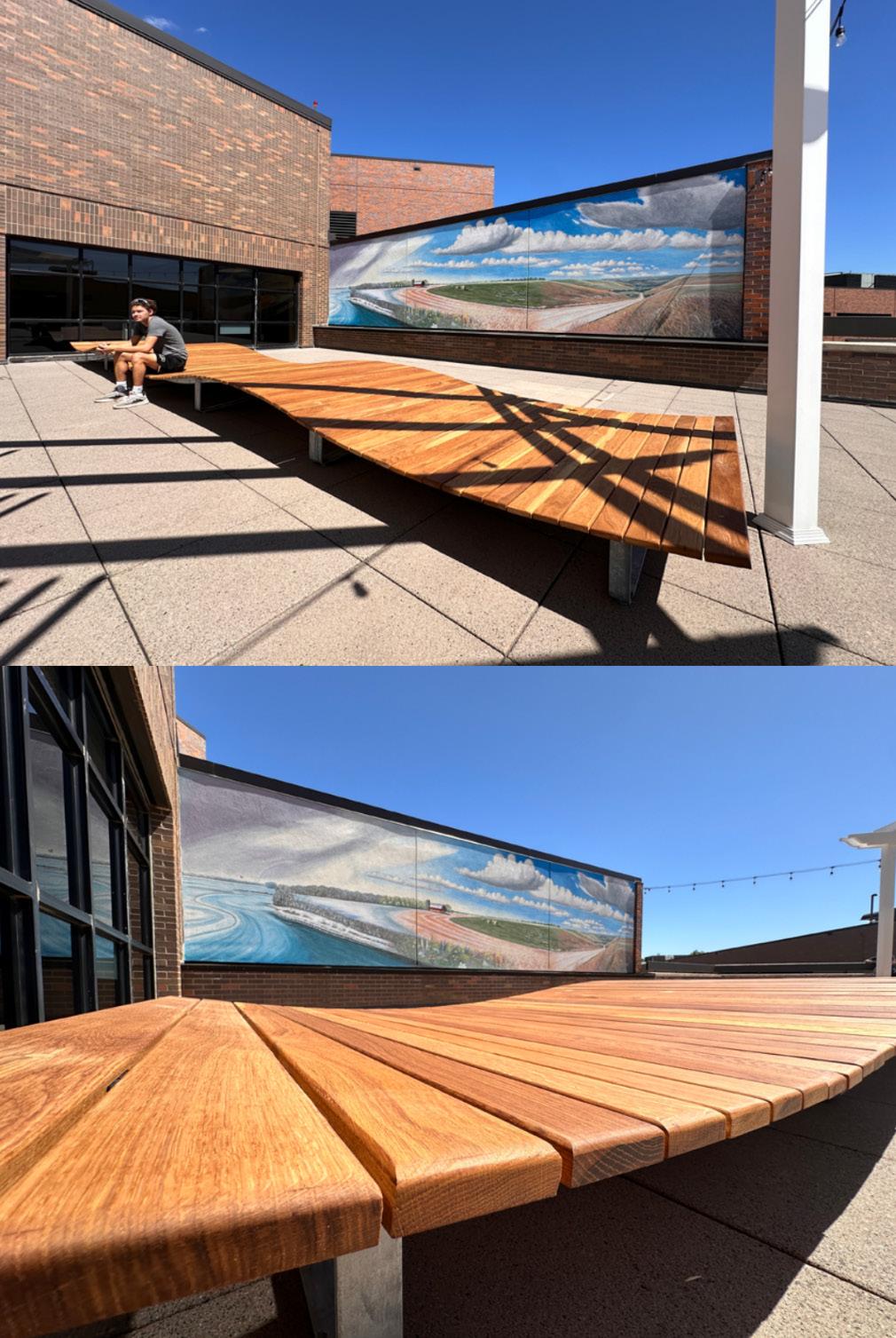 The bench was meant to complement and highlight the mural and its relation to the rolling hills of kansas. Each member of this team helped each other in all aspects of deisgn, presentation and construction.