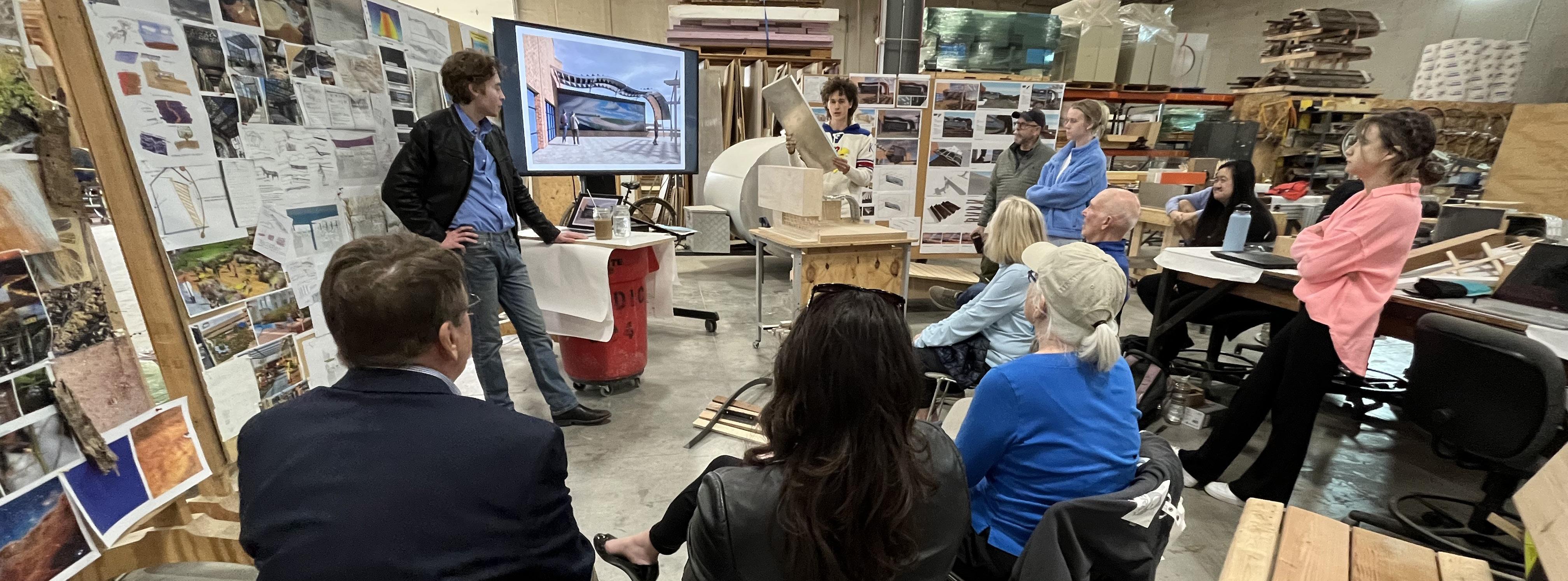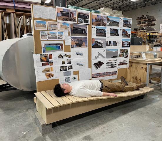 In our Design Build studio we were tasked with designing and constructing a memorial bench in rememberance of Mr. and Mrs. Penny’s son who had died a few years prior. The goal was to create a bench that would make the roof seem more welcoming and enjoyable to sit out on when it is warm or sunny. The bench takes insirpation from artist Louis Kopt’s work in the hospital memorial mural.